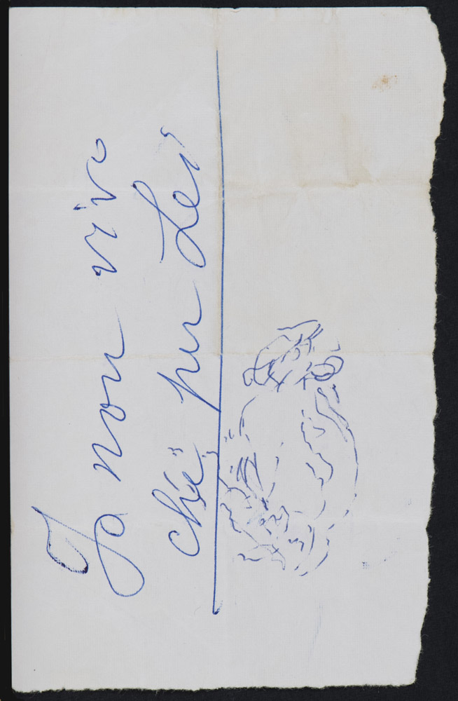 Penna biro blu su carta (frammento), cm. 13,7 x 8,8