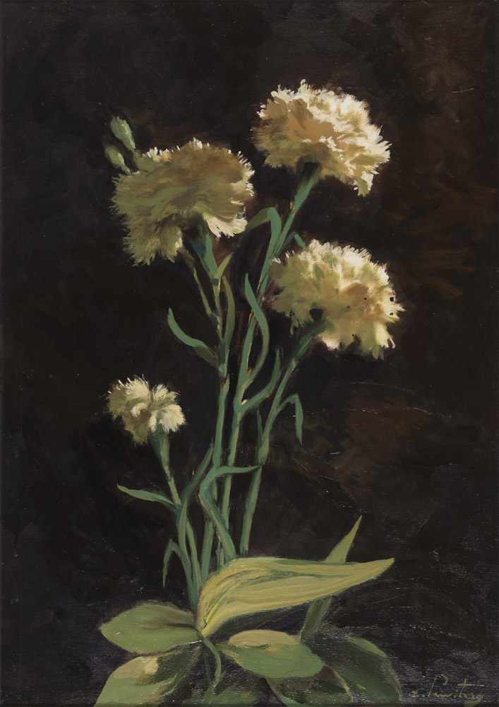 ANTONIO PRIVITERA (Catania 1910 - ?) Garofani Olio su tela, cm. 70,5 x 50,5...