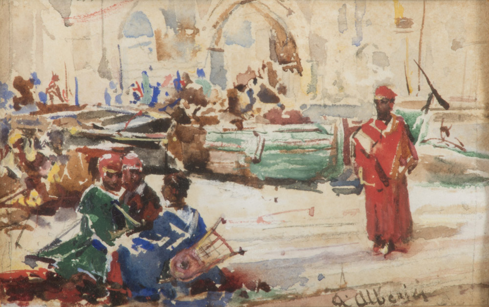 AUGUSTO ALBERICI (Roma 1846 - ? 1908) Scena esotica Acquarello su carta, cm....