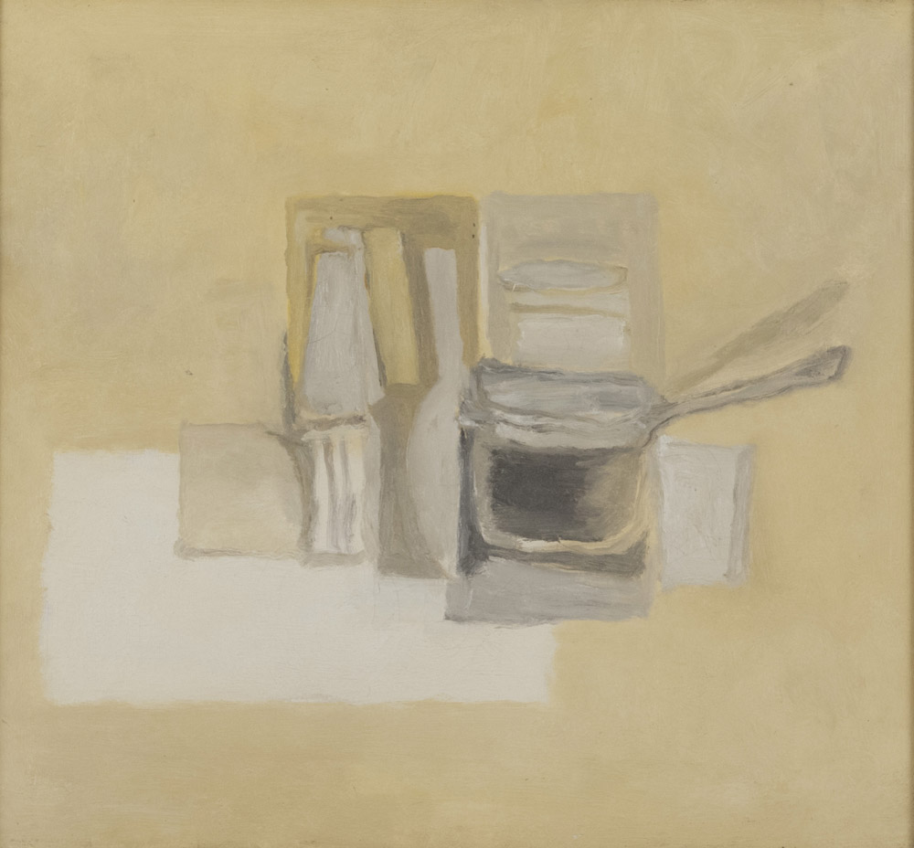 PIERO SADUN (Siena 1919 - 1974) Omaggio a Morandi, 1956 Olio su tela, cm. 44...