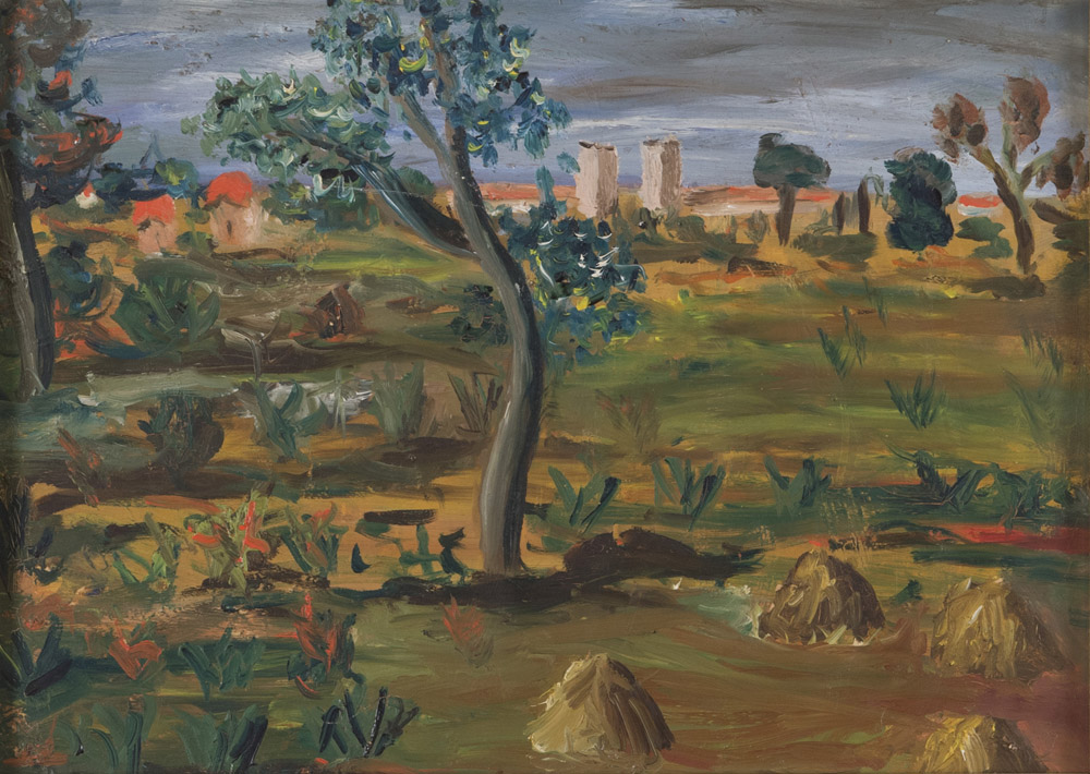 PITTORE ITALIANO XX SECOLO Paesaggio fluviale Olio su tavoletta, cm. 28 x 38