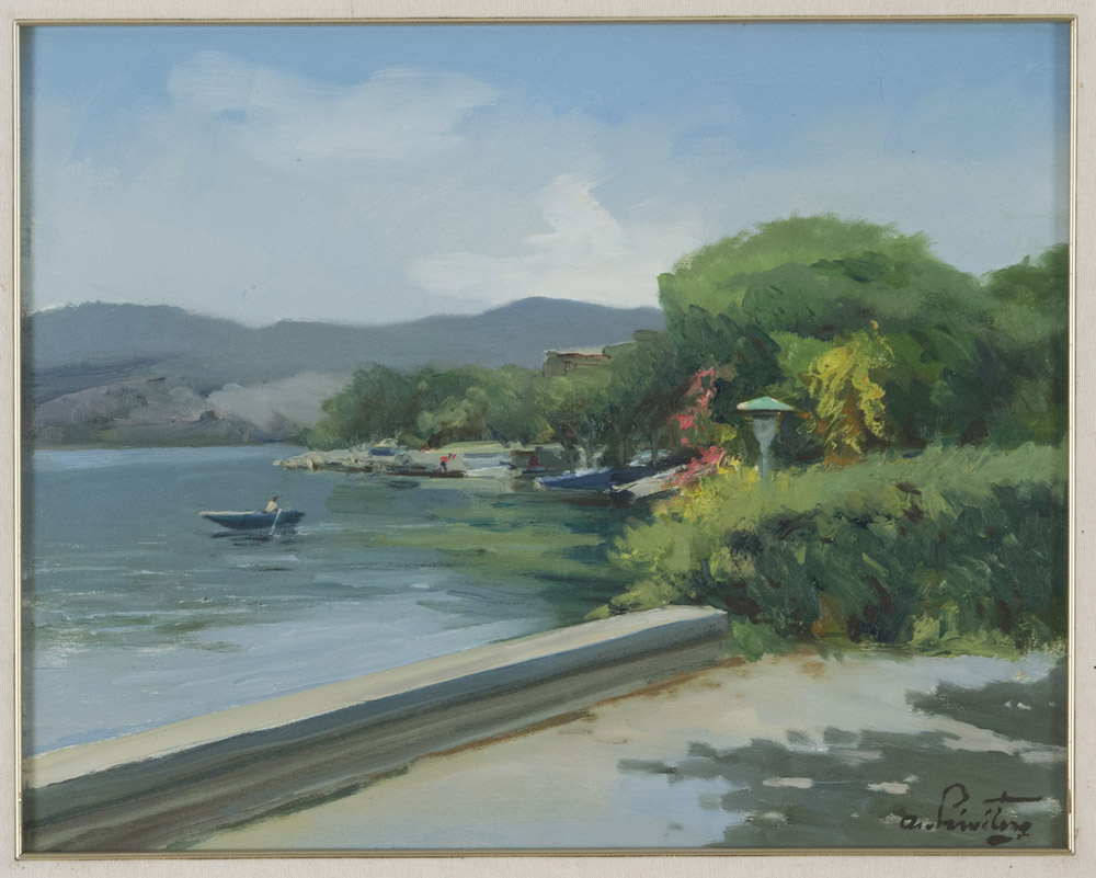 ANTONIO PRIVITERA (Catania 1910 - ?) Paesaggio con lago Olio su tela, cm....