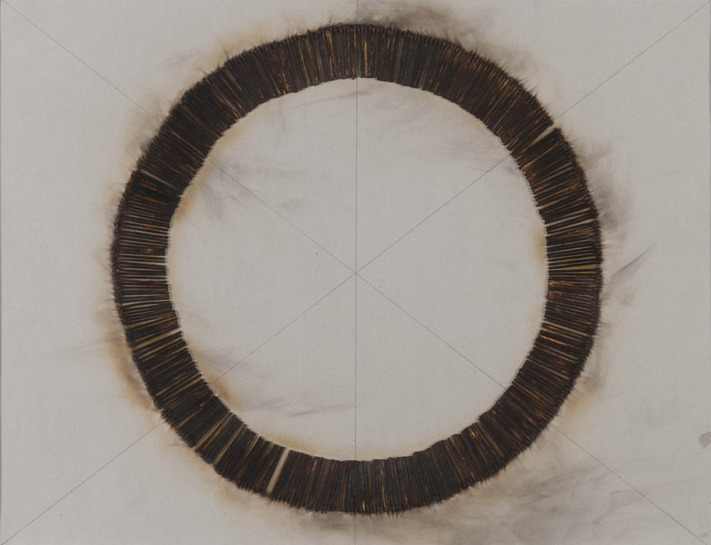 Tecnica mista con fiammiferi bruciati, cm. 50 x 65