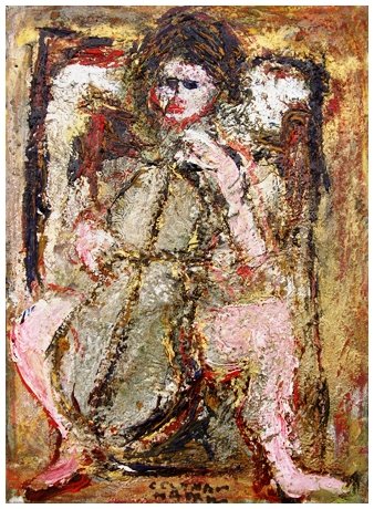 MAURILIO COLOMBINI 1937 Senza titolo Olio e t.m. su tela 35 x 25. Firma in b. al c.; sul verso dedica e firma.