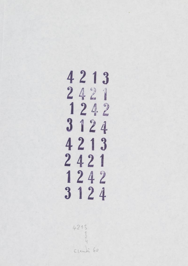 Edoardo Landi (San Felice sul Panaro (Mo) 1937) 4213, 1960, Tecnica mista su carta, cm. 29,5x21 Firma, data e titolo in basso al centro. Autentica dell'Artista su foto.