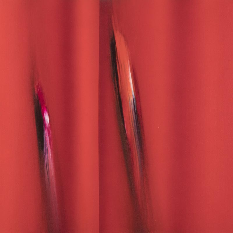 Ennio Finzi (Venezia 1931) Il verso del rosso, Acrilico su tela, cm. 80x80 Sul verso: firme e titolo. Autentica dell'Artista su foto.