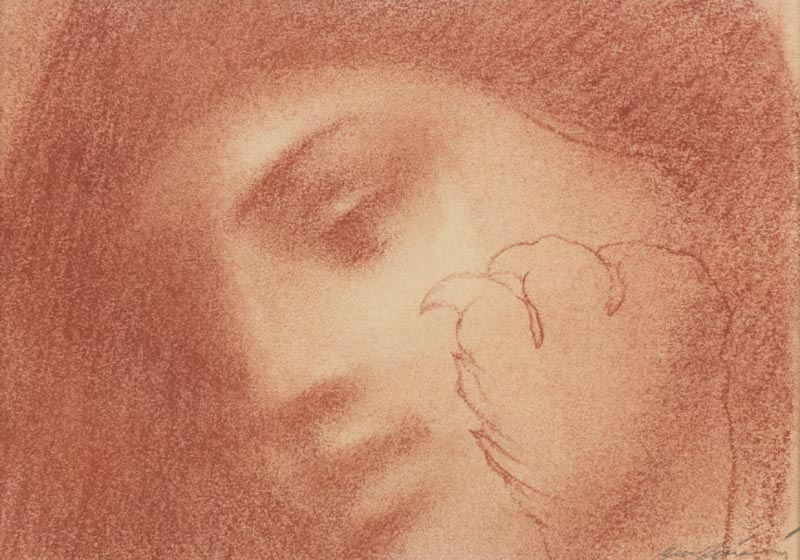 Omar Galliani (Montecchio Emilia (Re) 1954) Volto, Sanguigna e tecnica mista su cartoncino, cm. 15x20 Firmato in basso a destra.