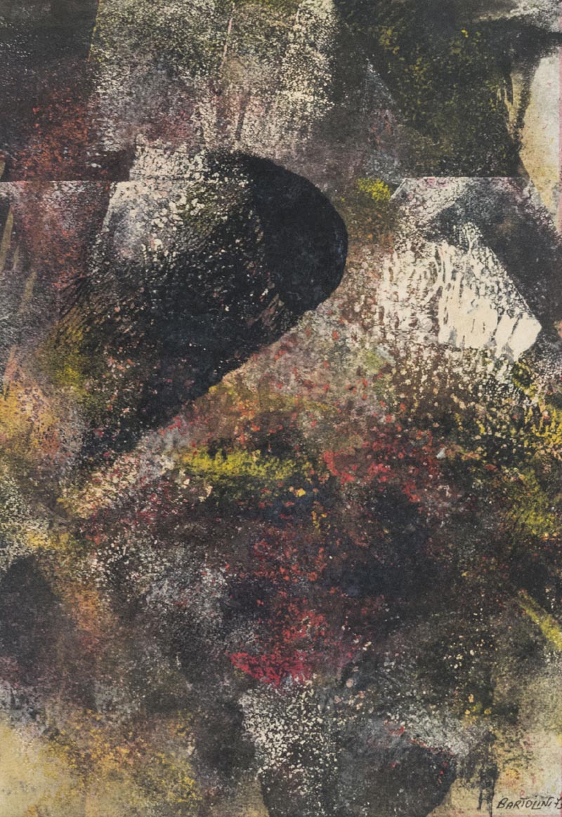 Luciano Bartolini (Fiesole 1948 Fiesole 1994) Senza titolo, 1973, Tecnica mista su carta, cm. 32x24 Firma e data in basso a destra, dedica a persona in basso al centro.