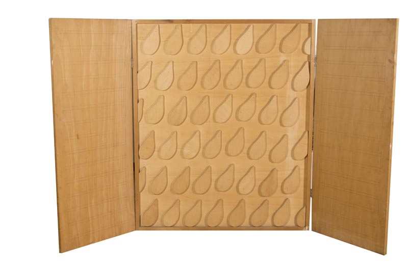 Gianni Ruffi (Firenze 1938) Piove, 1965, Assemblaggio di legni e interventi a matita, cm. 120x100x8,5, aperto cm. 120x200x8,5 Sul verso: firma, data e titolo. Autentica dell' Artista su foto.