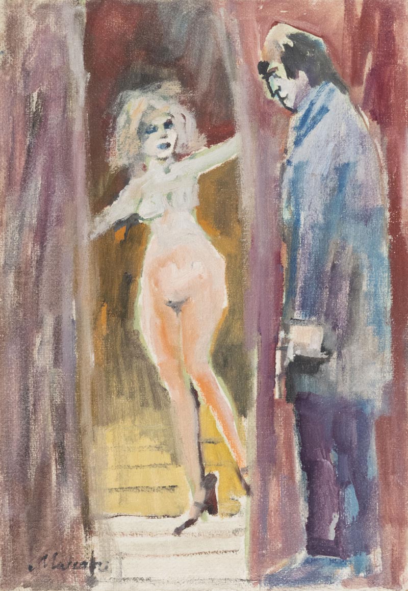 Mino Maccari (Siena 1898 Roma 1989) L'assassino, anni '70-'75, Olio su tela,...