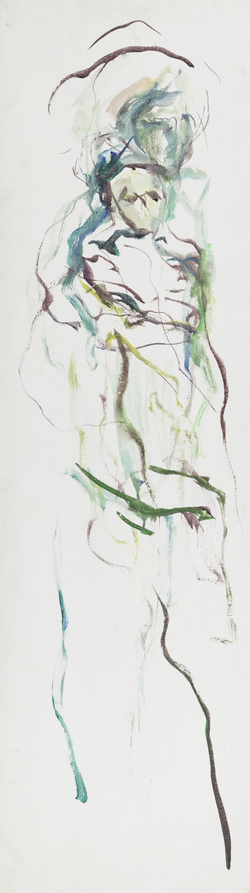 Ernesto Treccani (Milano 1920 2009) Figura, 1978, Olio su tela, cm. 120x35 Firmato in basso al centro; Sul verso: scritto di Autenticità dell'Artista, con data e dedica a persona.