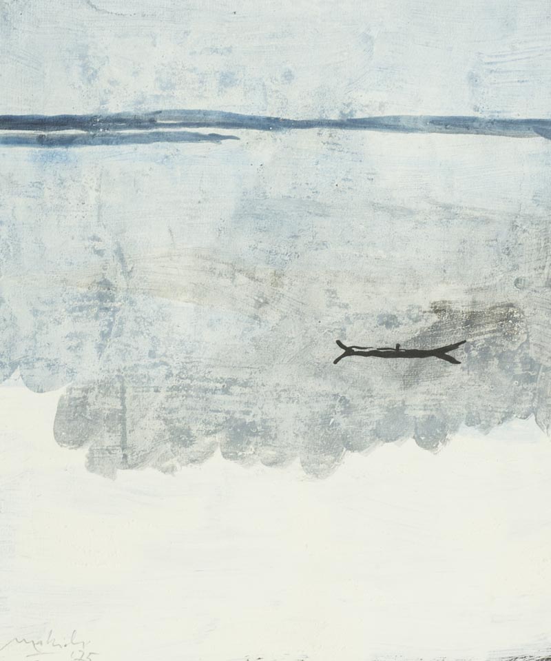 Carlo Mattioli (Modena 1911 Parma 1994) Il Po, 1975, Tempera e tecnica mista su carta, cm. 40,5x34 Firma e data in basso a sinistra. Autentica del figlio Marcello Mattioli su foto.