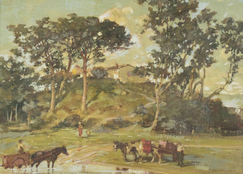 Guido Somelli (1881 1940) Paesaggio, Olio su tavola, cm. 47x63 Firmato in basso a destra.