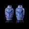 Coppia di potiche con coperchio in porcellana bianca e blu decorati con...