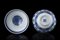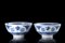 Coppia di ciotole in porcellana bianca e blu, decorate con gru in volo...