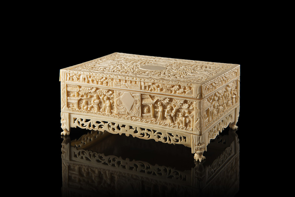 Scatola rettangolare con coperchio in avorio con figure in un paesaggio Cina, sec. XIX An ivory box and cover with figures in a landscape China, 19th century (5,5x12x8,5 cm.)