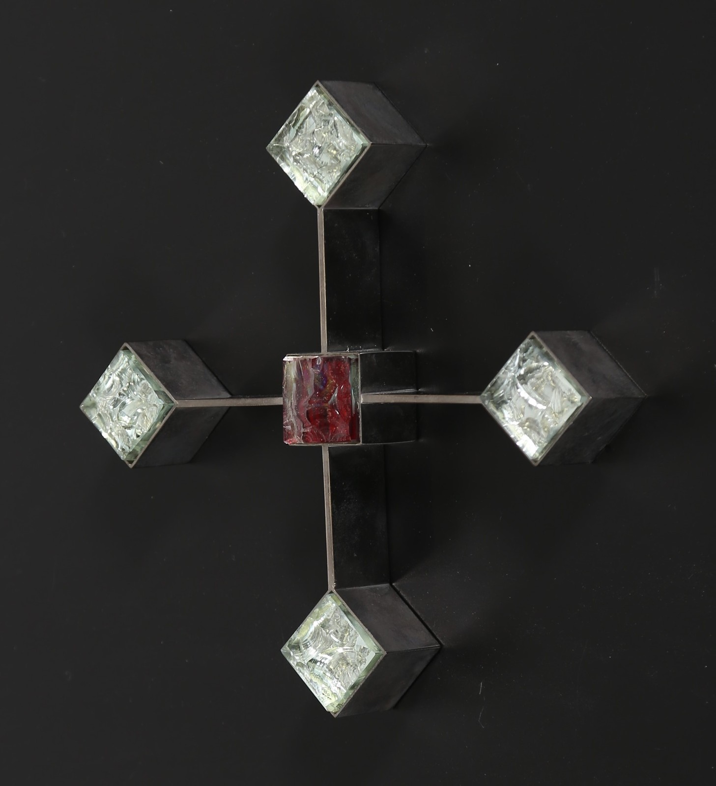FONTANA ARTE Croce da parete in ottone nichelato e cristallo scalpellato,...
