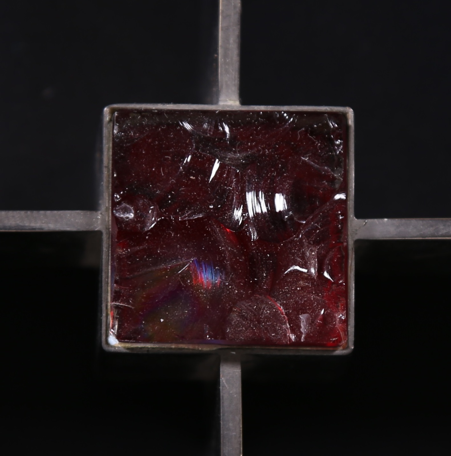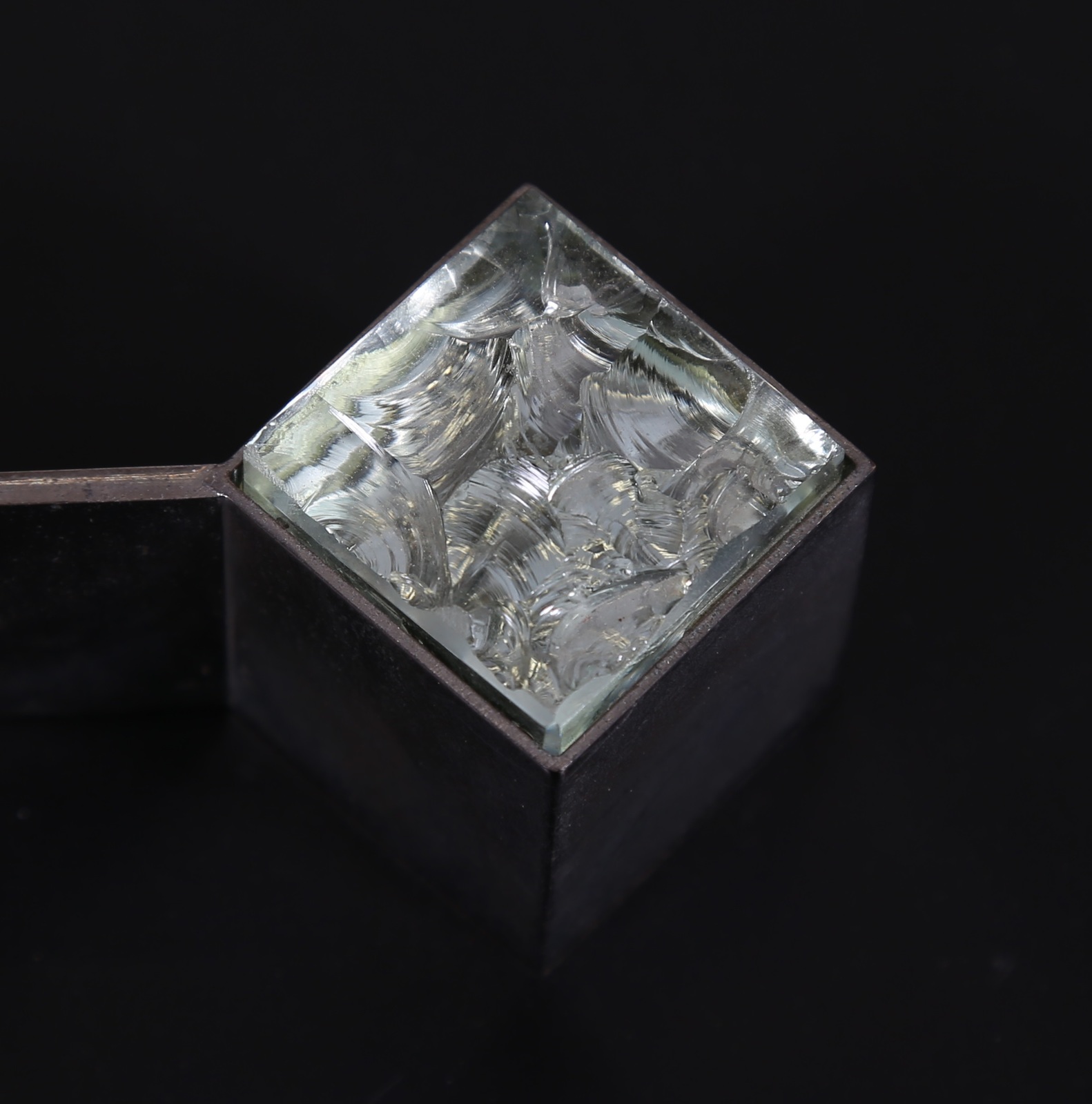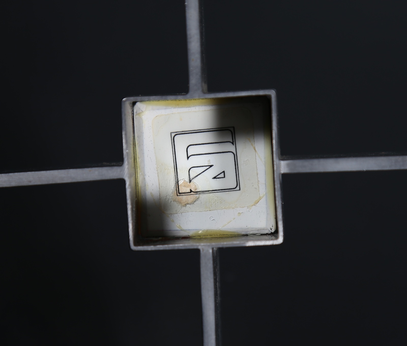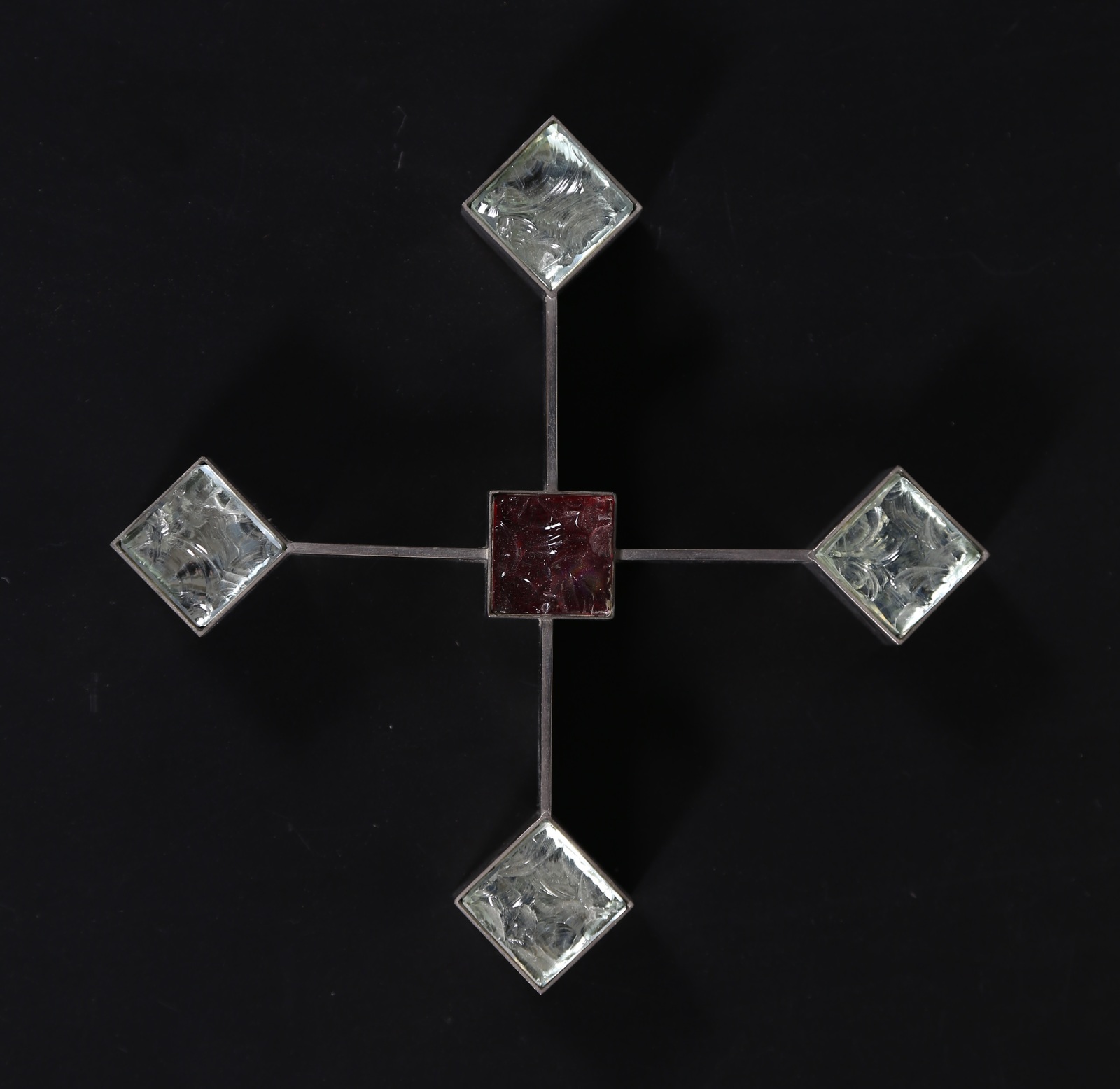 FONTANA ARTE Croce da parete in ottone nichelato e cristallo scalpellato, mod, 2435, per Fontana Arte, anni 60 . -. Cm 20,00 x 3,50 x 20,00. Etichetta sul retro