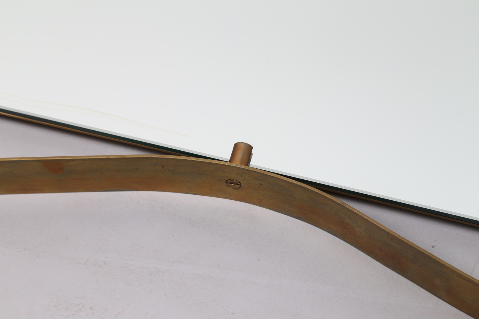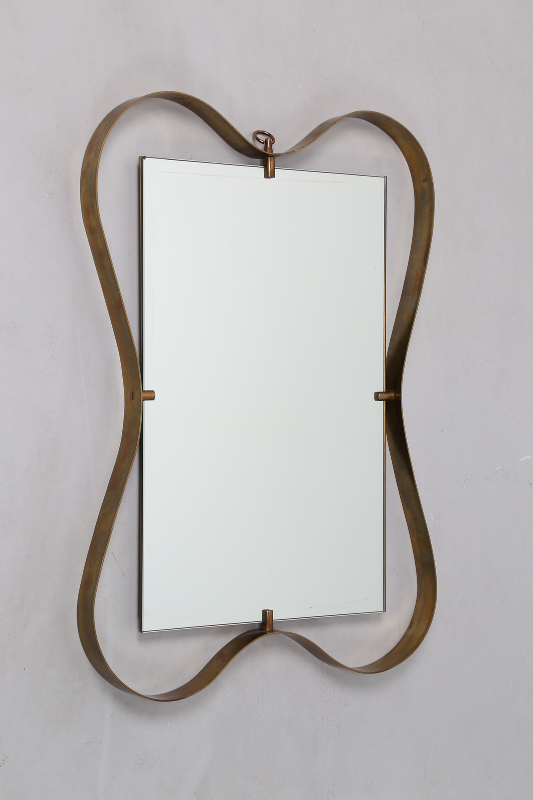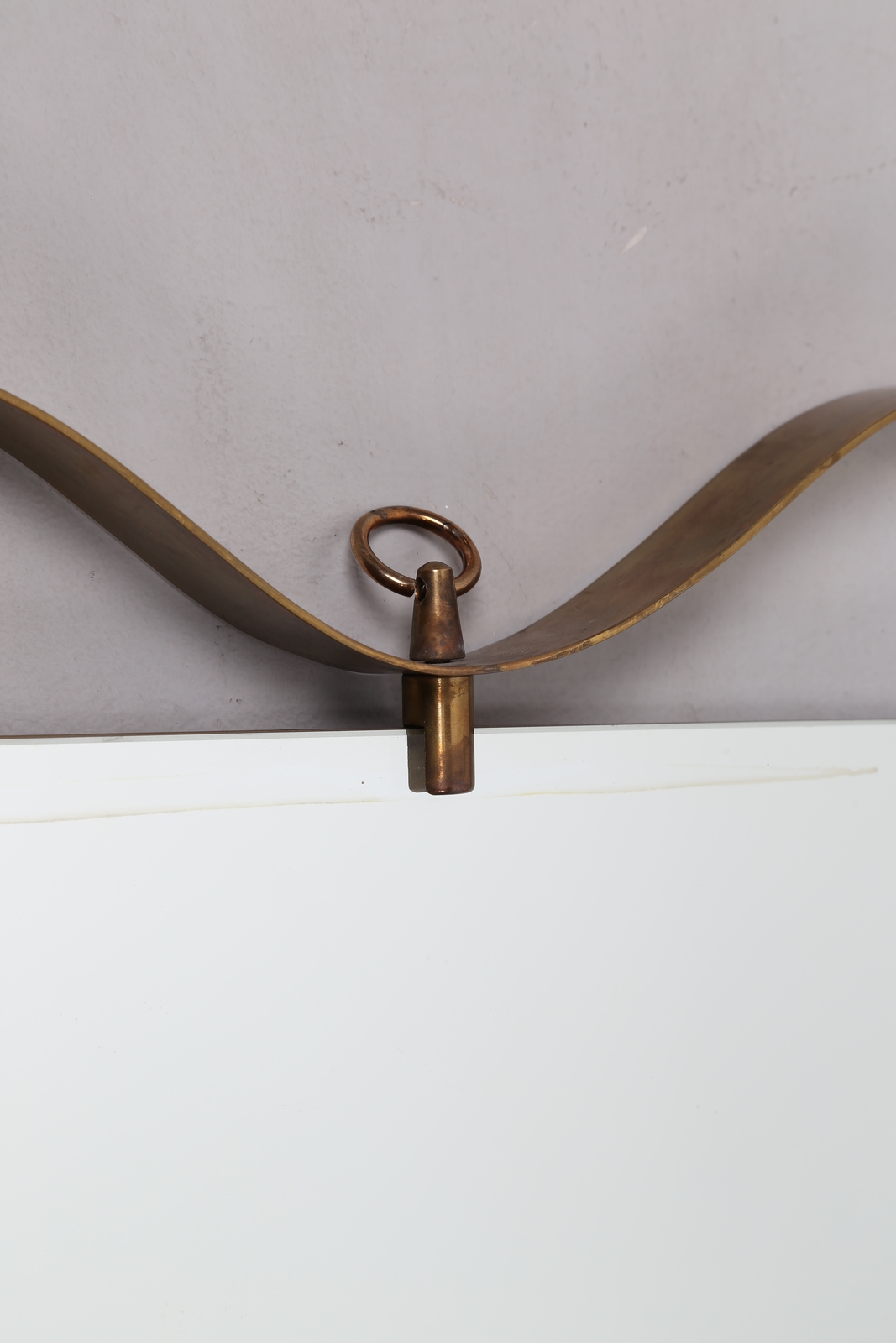 FONTANA ARTE Attrib. Specchio da parete con cornice in ottone, per Fontana arte anni 50. Pubblicazioni; Lastre di Vetro e Cristallo, num. 10, agosto 1950 . . Cm 49,00 x 71,00 x 4,00.