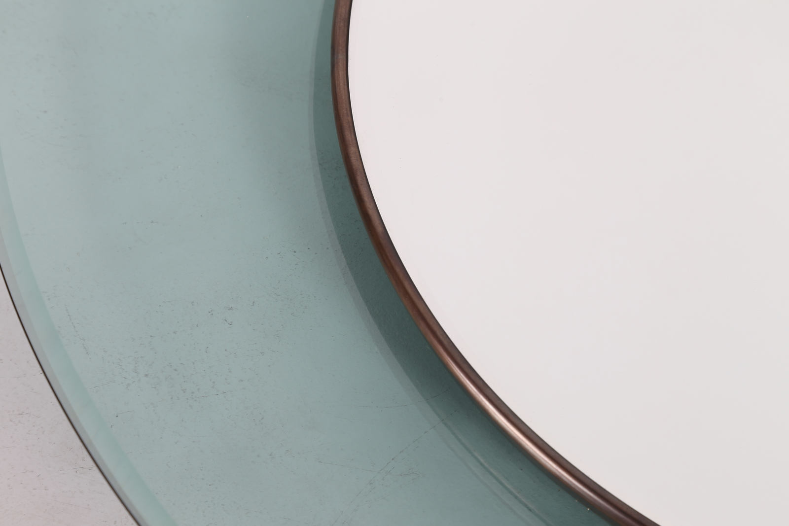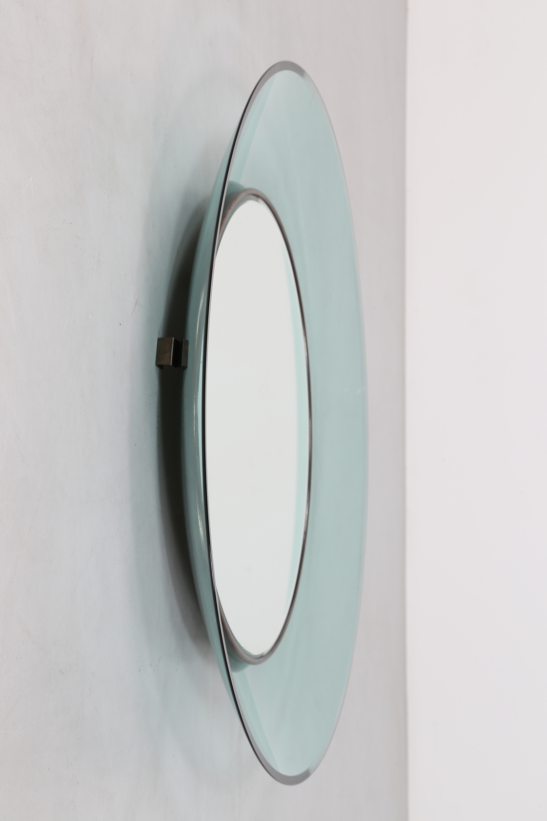INGRAND MAX (1908 - 1969) Specchio in cristallo, curvato e molato, con profilo in ottone mod. 1669, per Fontana Arte. Pubblicazioni; L.Falconi Fontana Arte, una storia trasparente, Skira, 1998, pag. 111. Franco Deboni, Fontana Arte, Allemandi 2012, fig. 419. -. Cm 76,00 x 76,00 x 9,00.