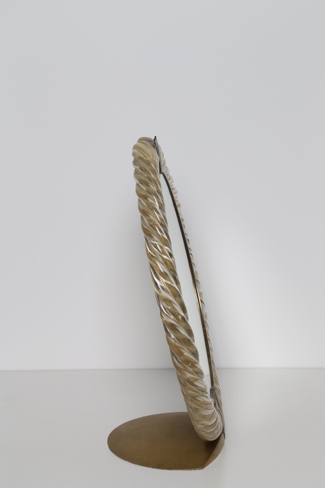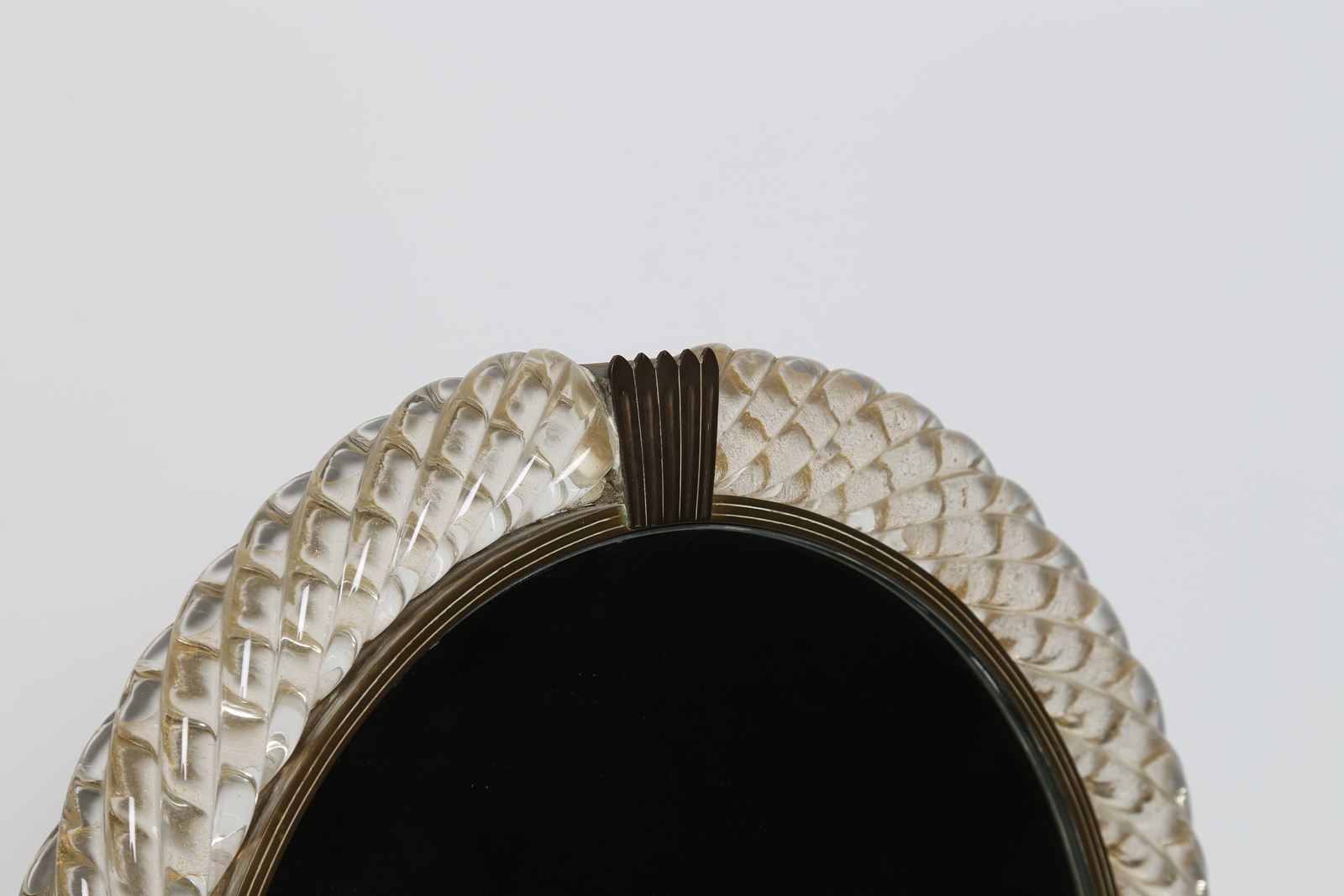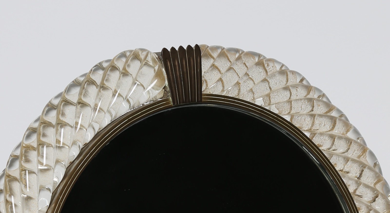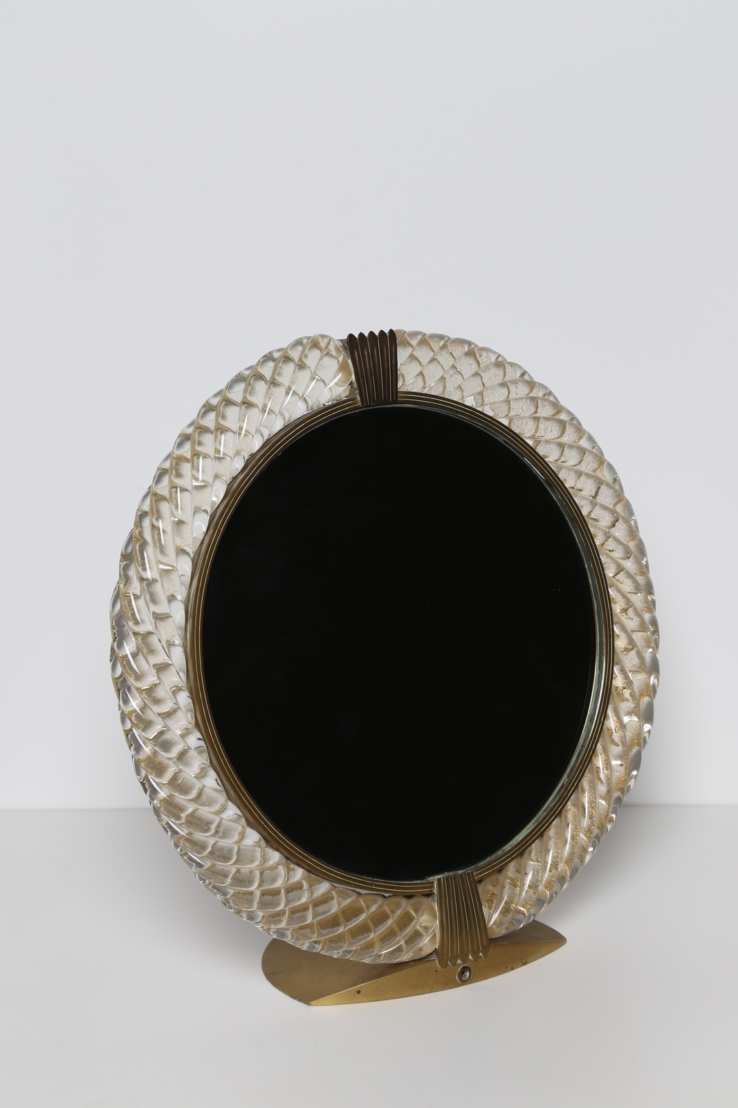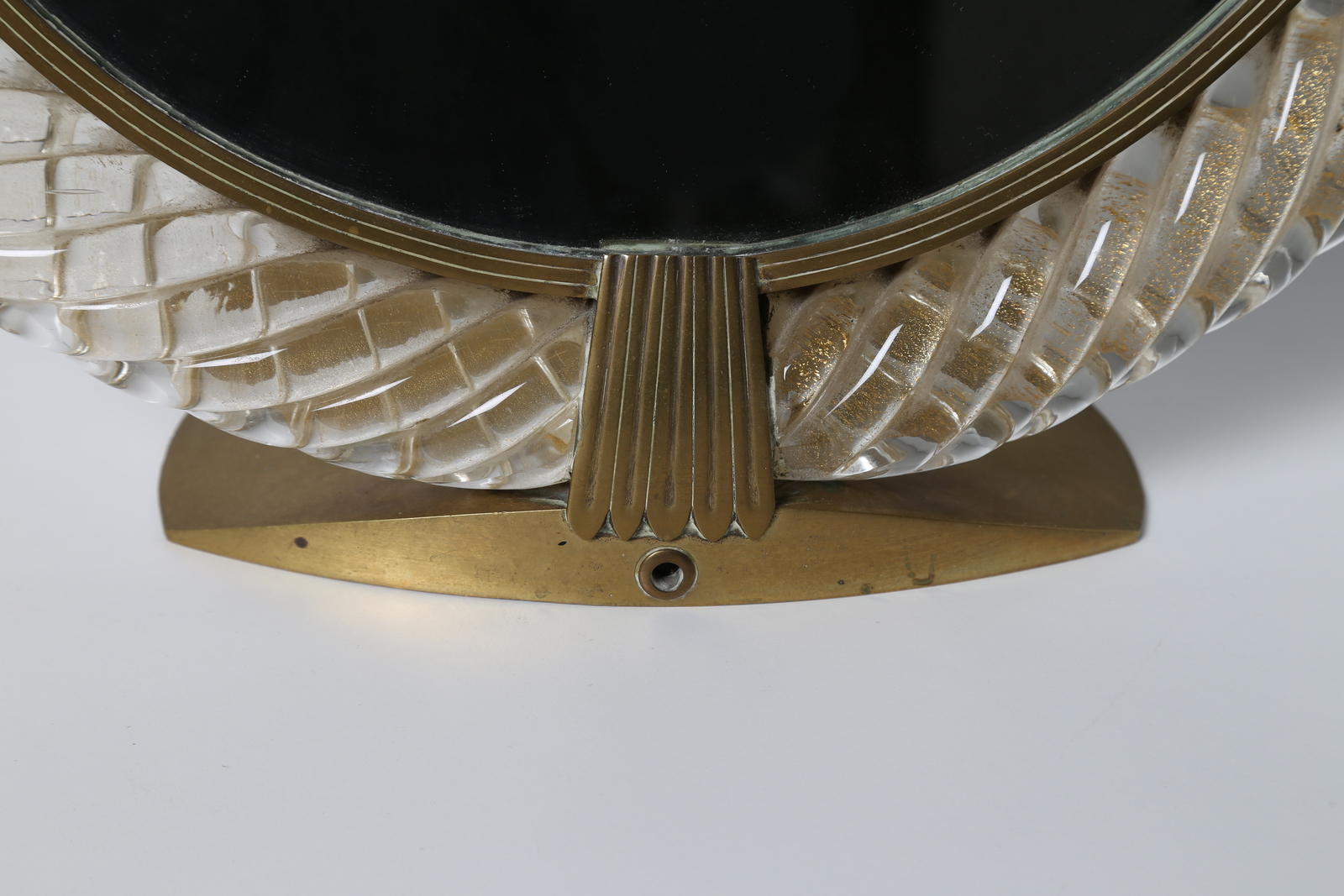 SCARPA CARLO (1906 - 1978) Specchio da tavolo con cornice in cristallo torchon, con base e dettagli in ottone, per Venini anni 40. -. Cm 45,00 x 45,00 x 17,00.