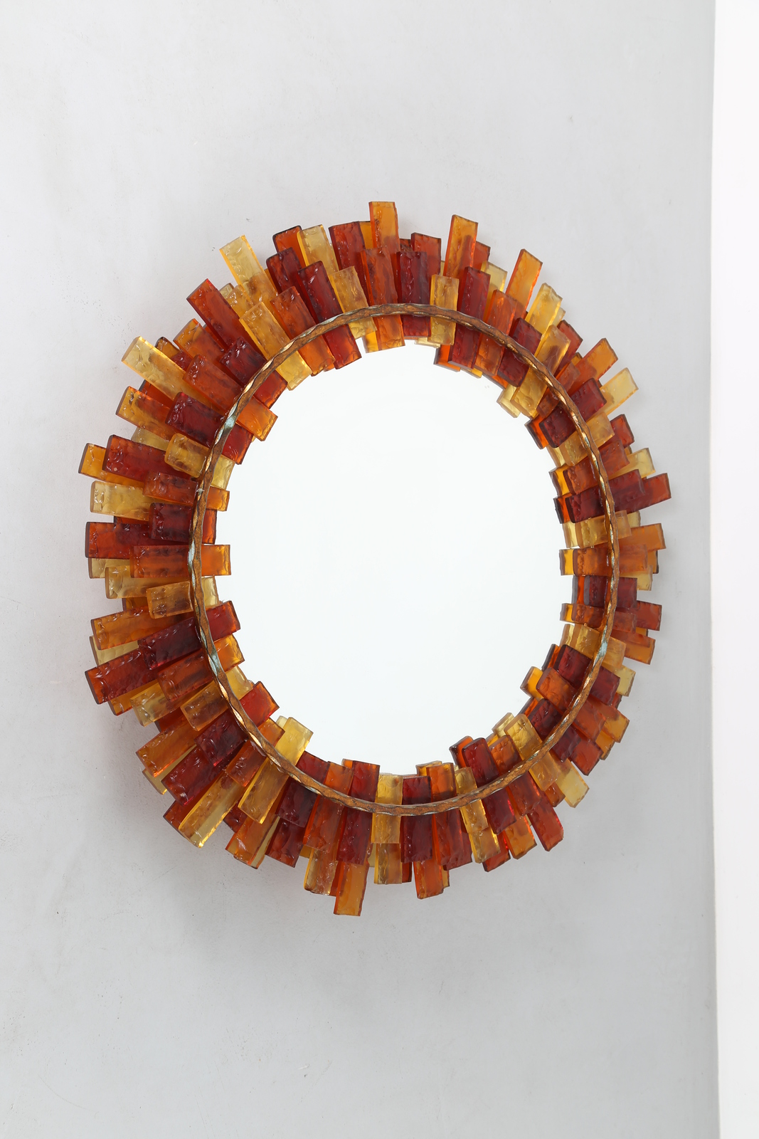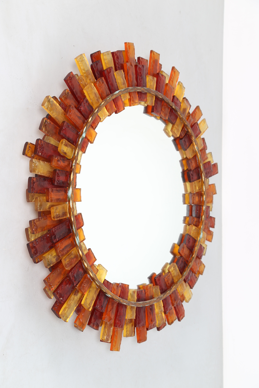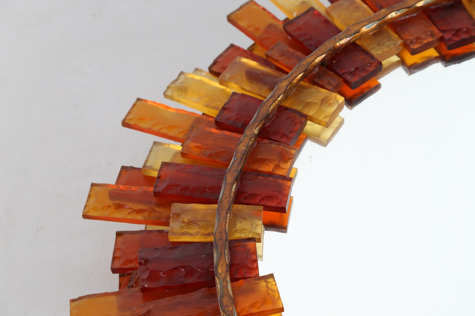 LONGOBARD Specchiera da parete retroilluminata in ferro forgiato e tessere di vetro colorato, mod. 5030, produzione Longobard VR, . -. Cm 88,00 x 88,00 x 10,00.