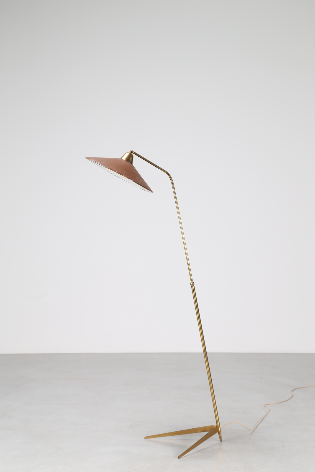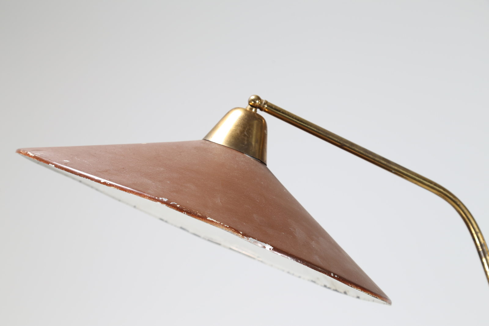 OSTUNI GIUSEPPE Attrib. Lampada telescopica da terra in ottone e metallo laccato, anni 50. -. Cm 49,00 x 160,00 x 75,00.