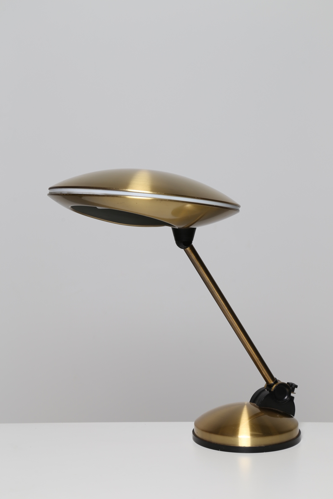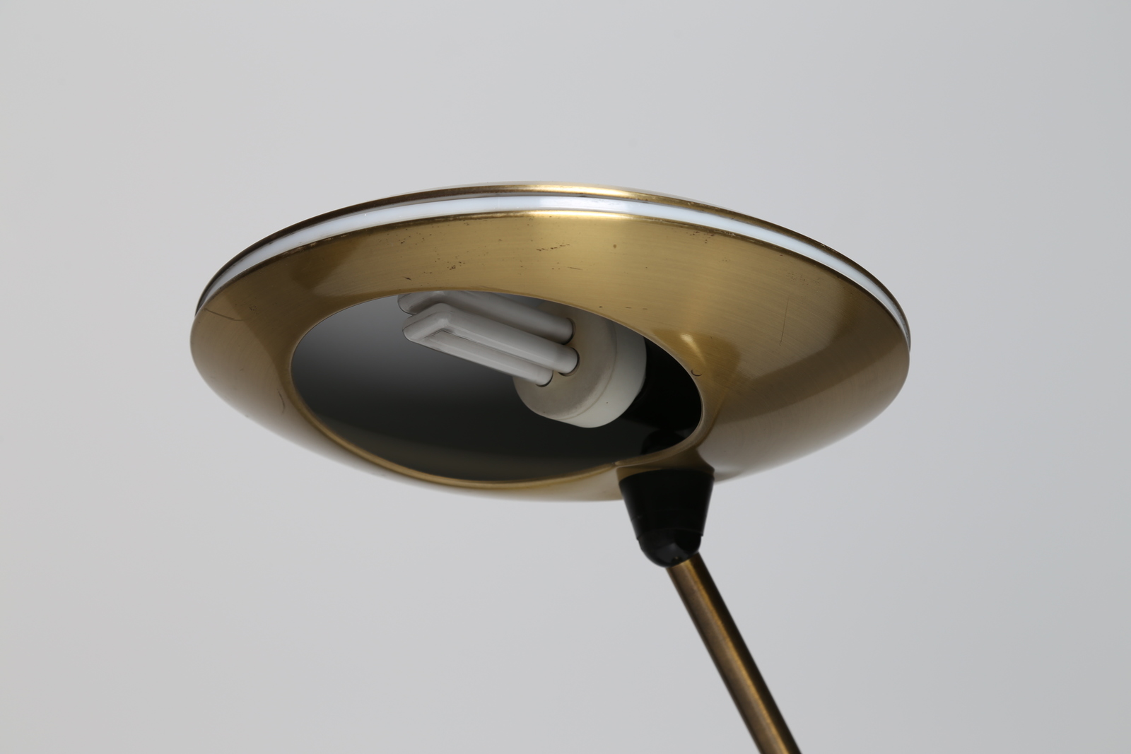Lotto 125 | MANIFATTURA ITALIANA Lampada da tavolo in metallo, ottone, plastica e vetro...