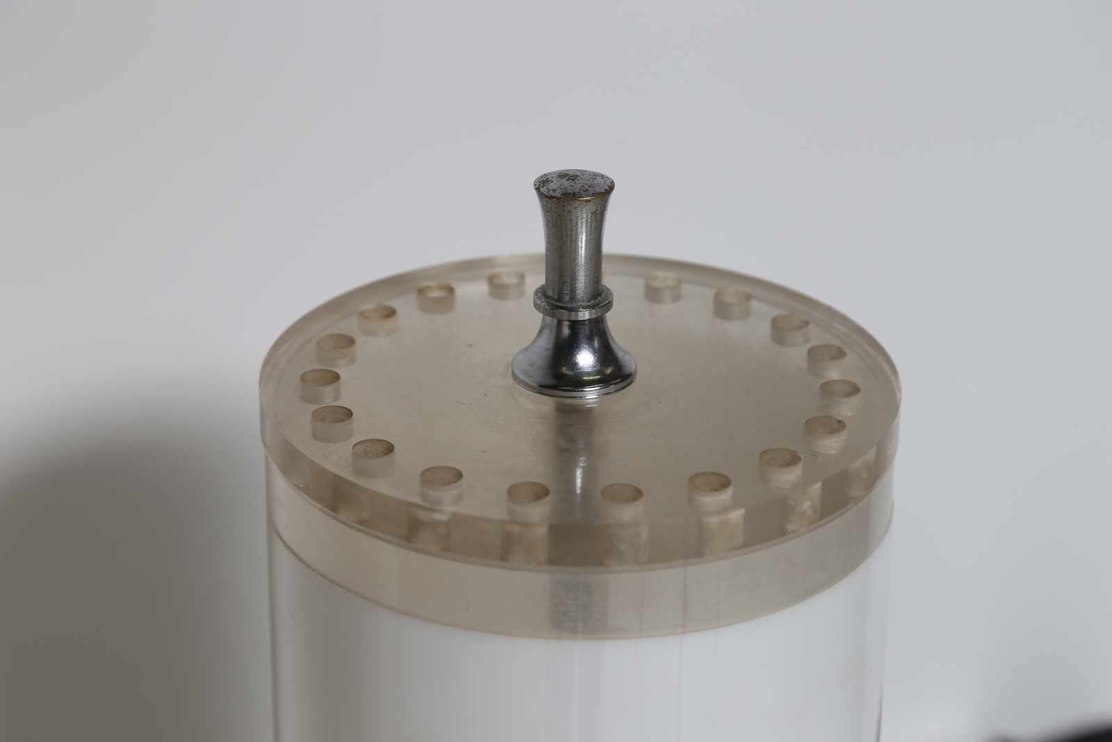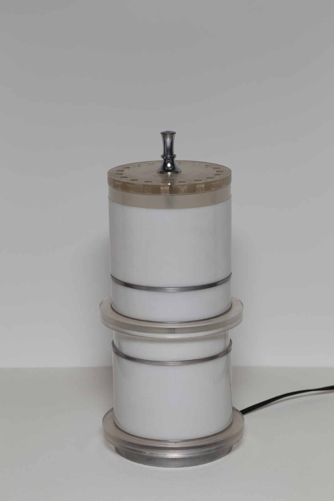 Lotto 129 | MANIFATTURA ITALIANA Lampada da tavolo in plexiglass e ottone nichelato, anni...