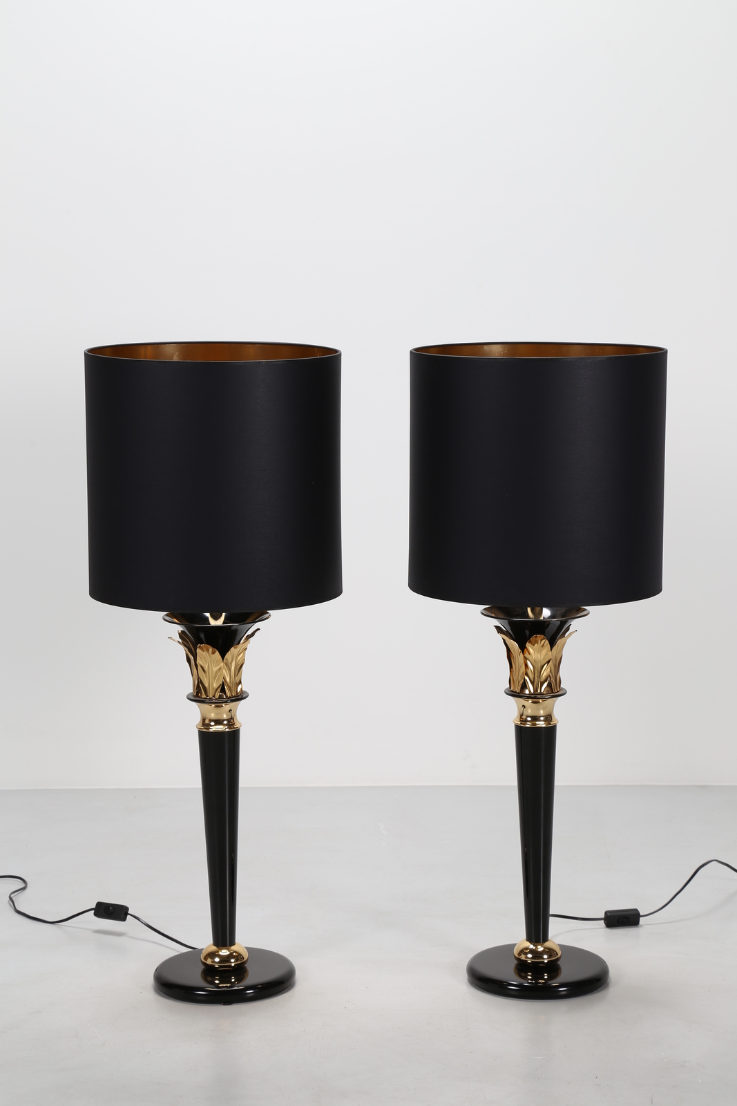 MANIFATTURA ITALIANA Coppia di lampade da tavolo in metallo laccato ottone e...