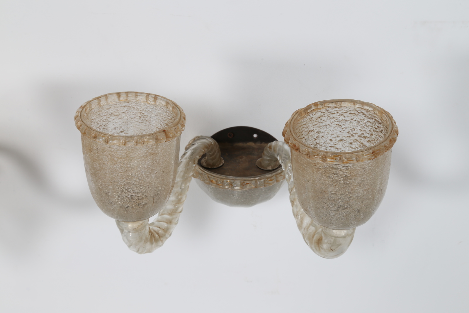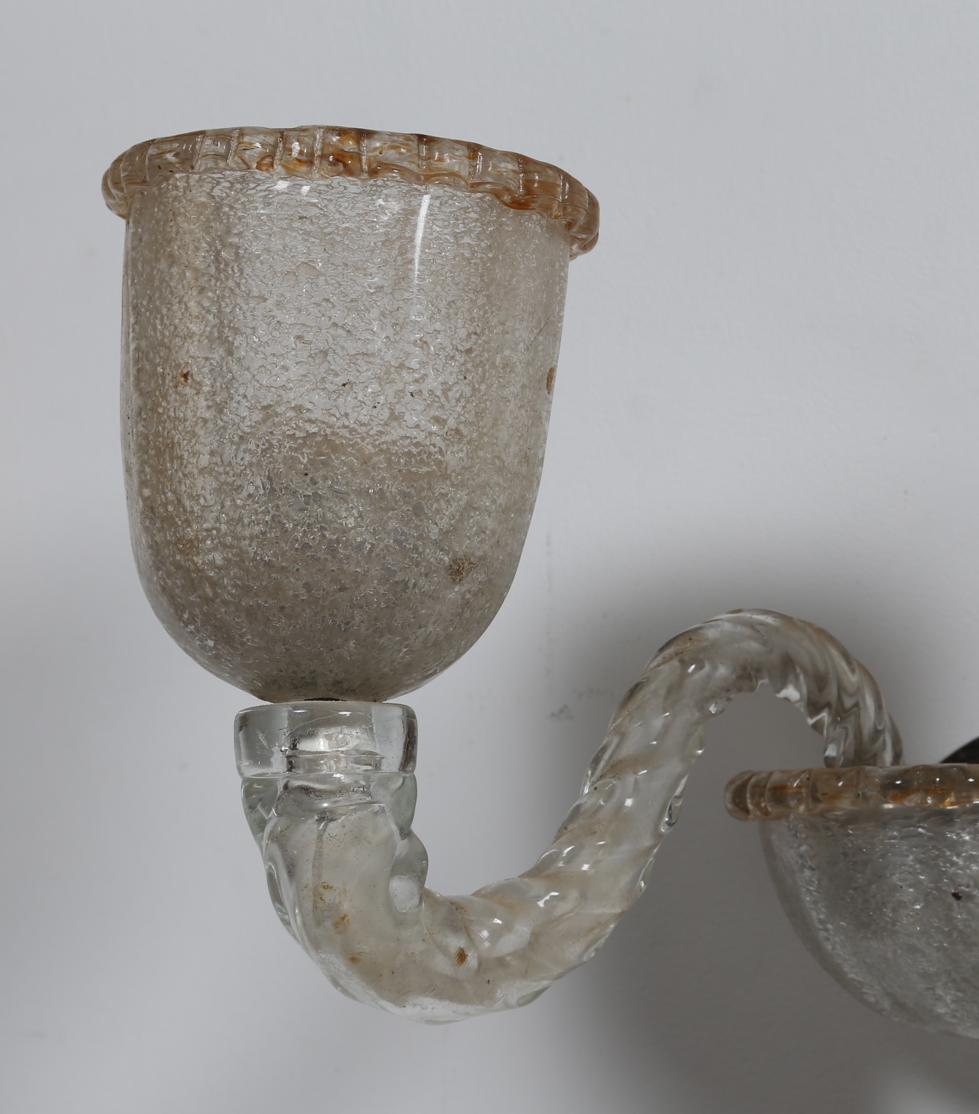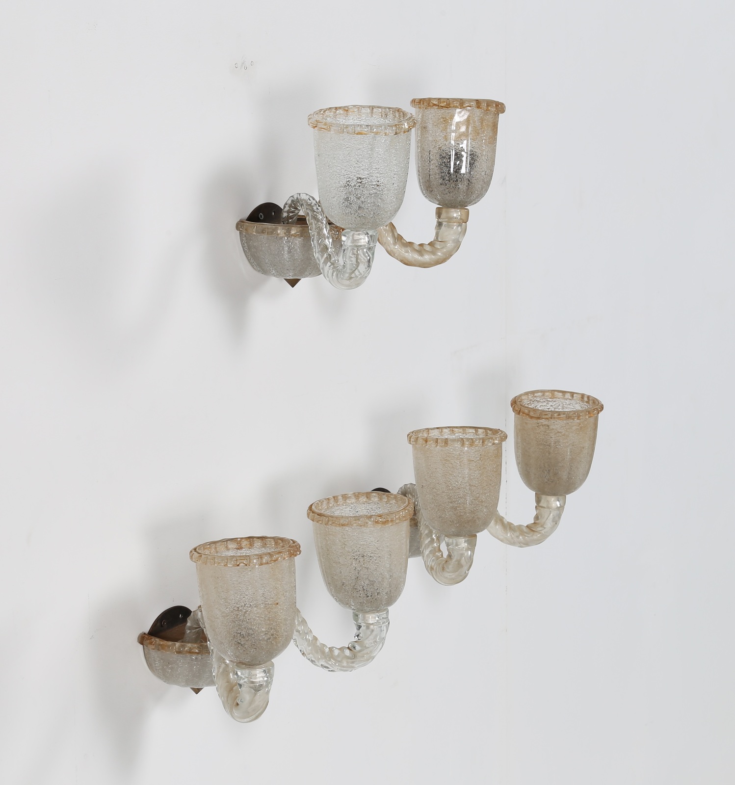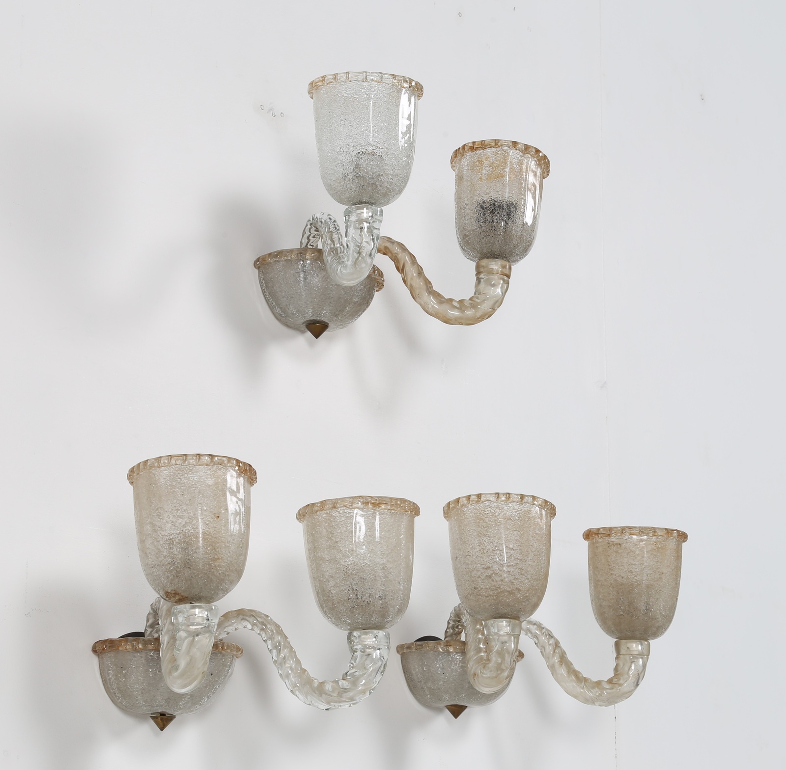 BAROVIER & TOSO Tre appliques in vetro pulegoso a foglia oro, anni 40. -. Cm...