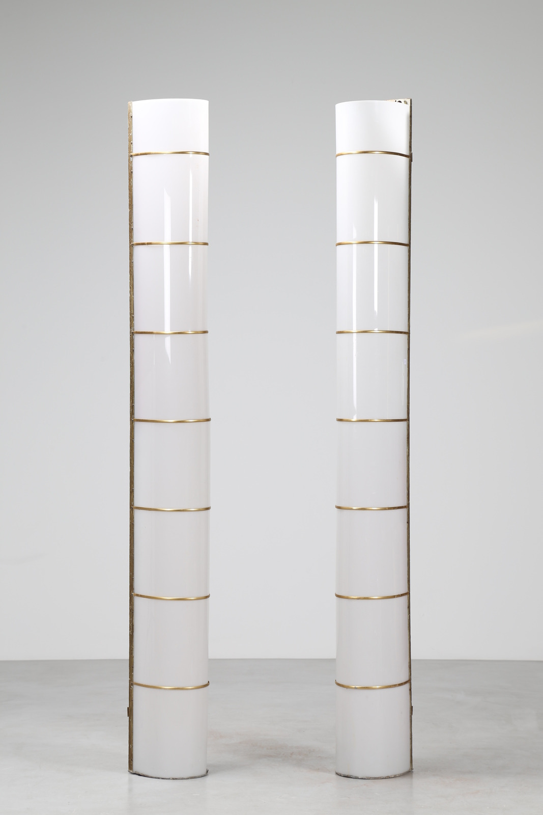 MANIFATTURA ITALIANA Coppia di grandi lampade da muro in perspexe ottone, anni 70 . . Cm 26,00 x 253,00 x 26,00.
