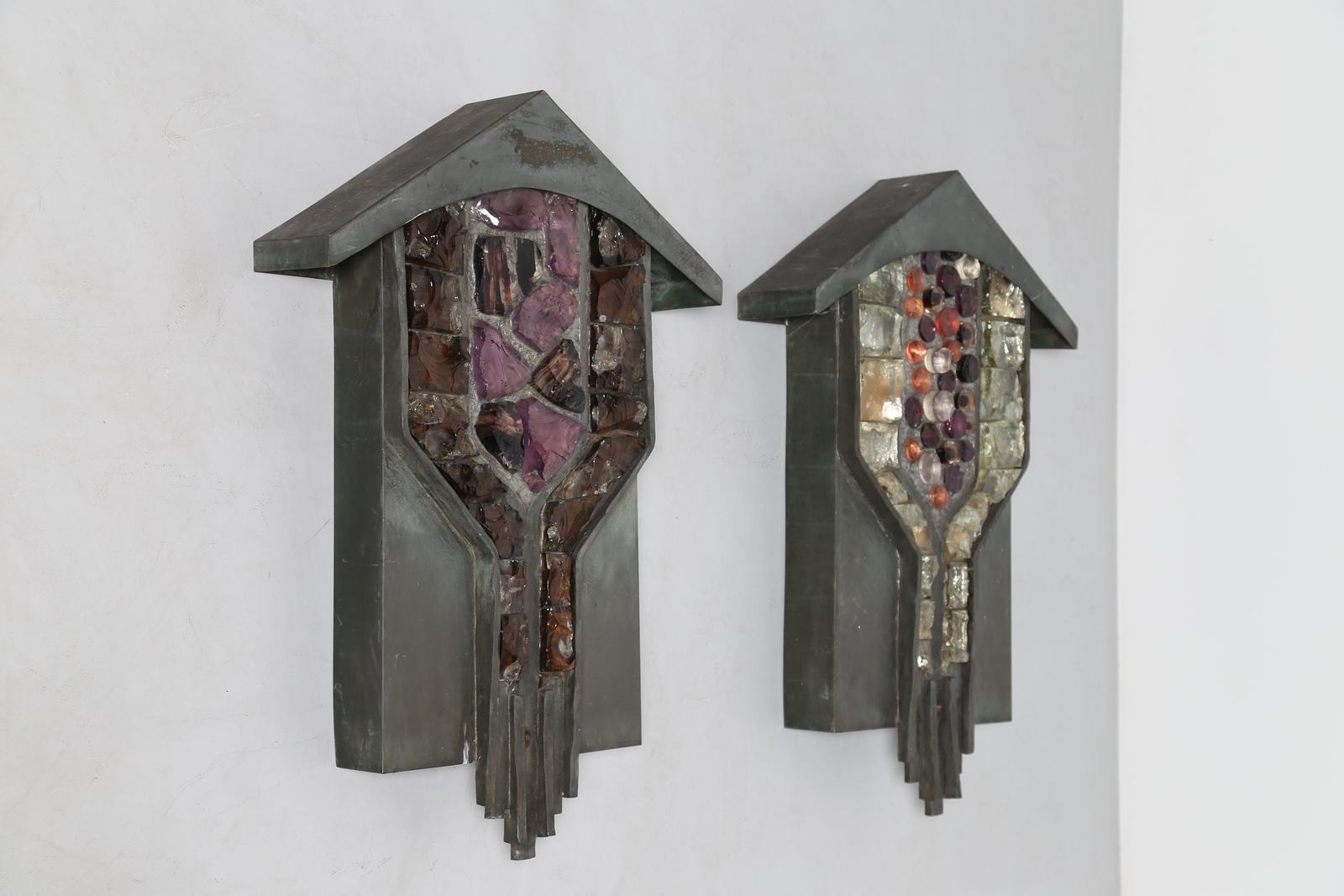 POLIARTE VERONA Coppia di grandi appliques in bronzo e vetro scalpellato, anni 60. -. Cm 53,00 x 79,50 x 12,00.
