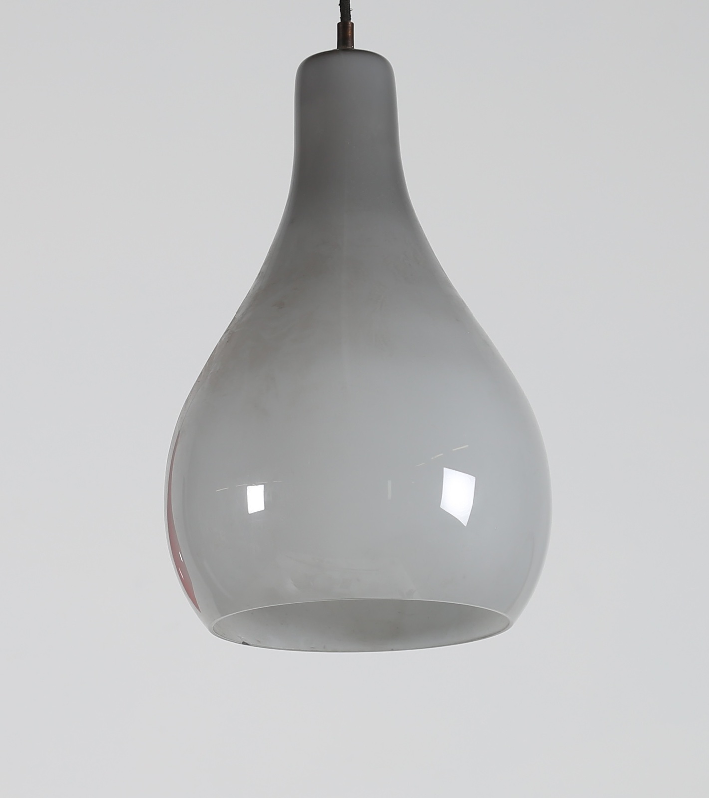 VISTOSI GINO (1925 - 1980) Coppia di lampade a sospensione in vetro incamiciato rooso e grigio, anni 70 . -. Cm 23,00 x 80,00 x 23,00.