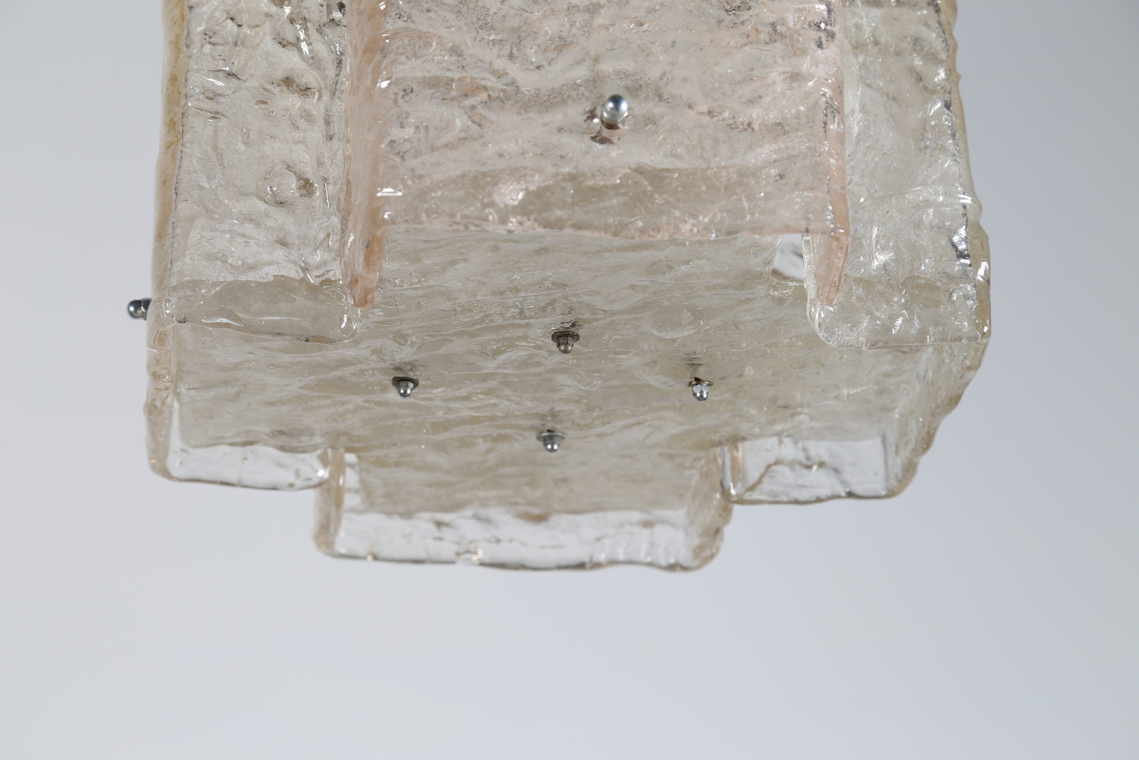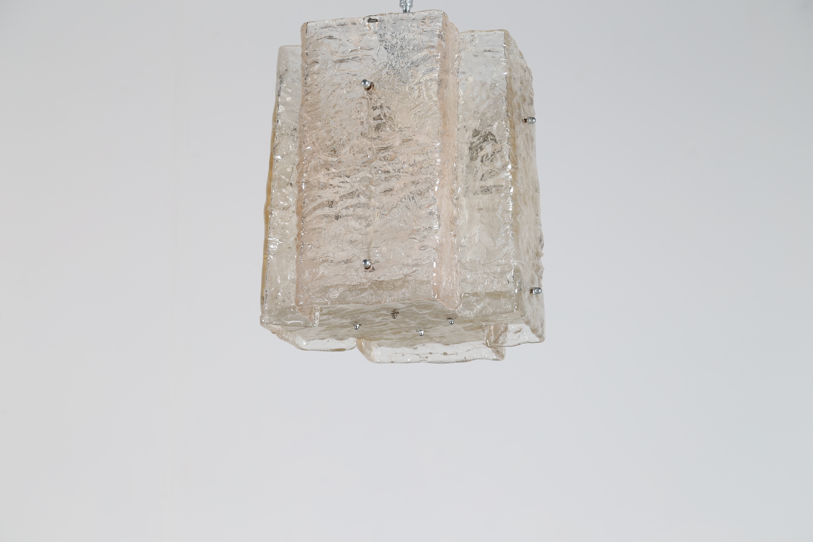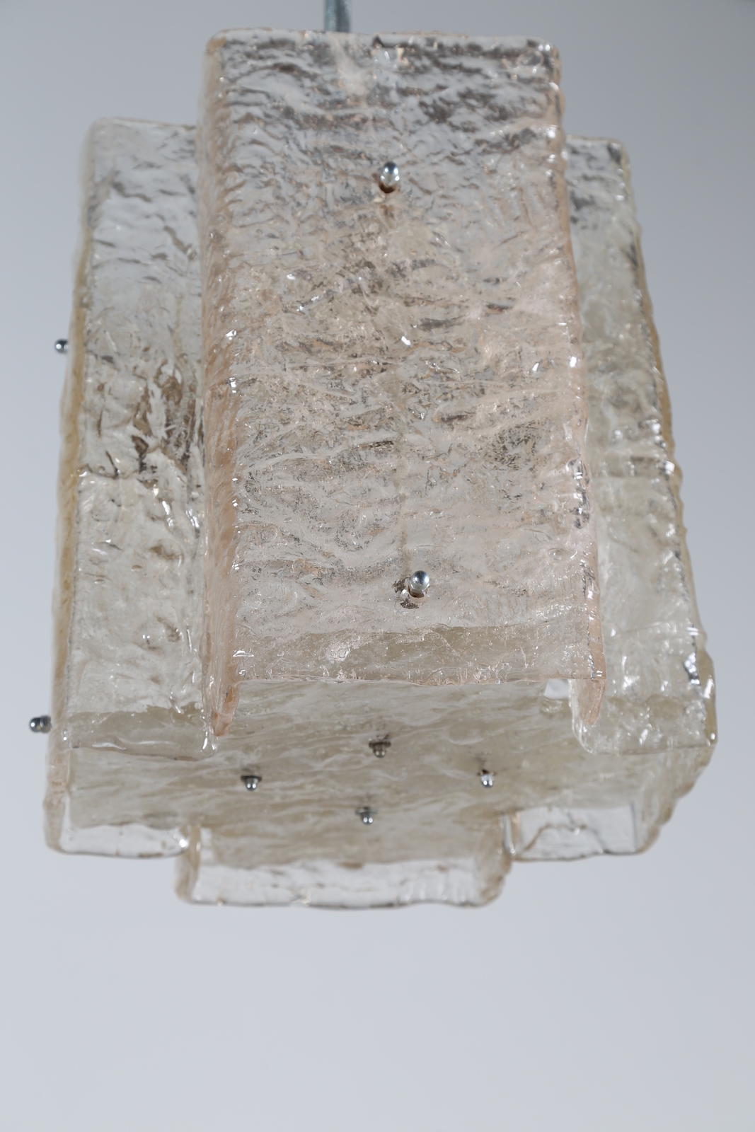 MANIFATTURA ITALIANA Lampada a sospensione in metallo e vetro, Murano anni 60...