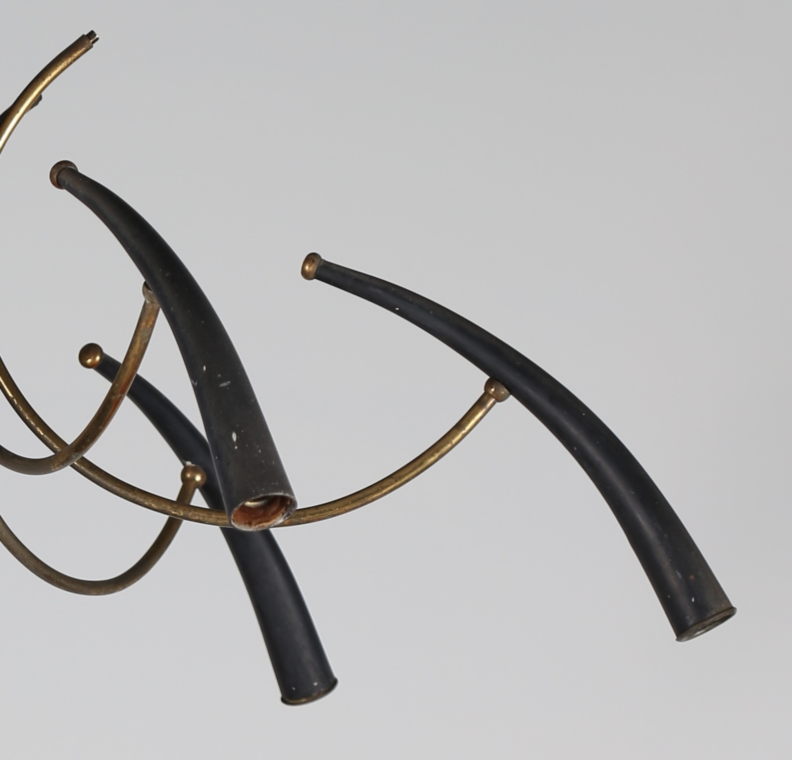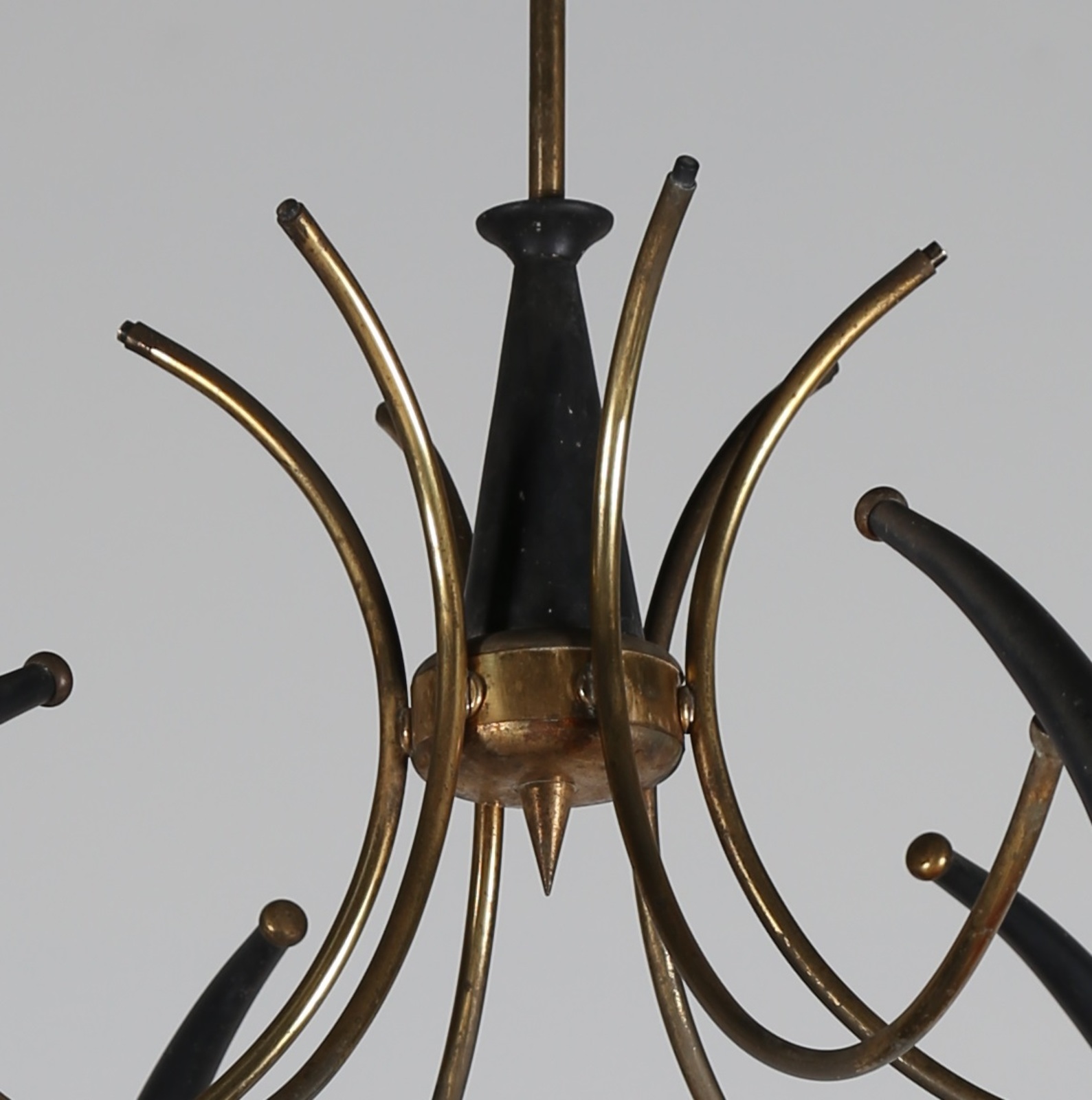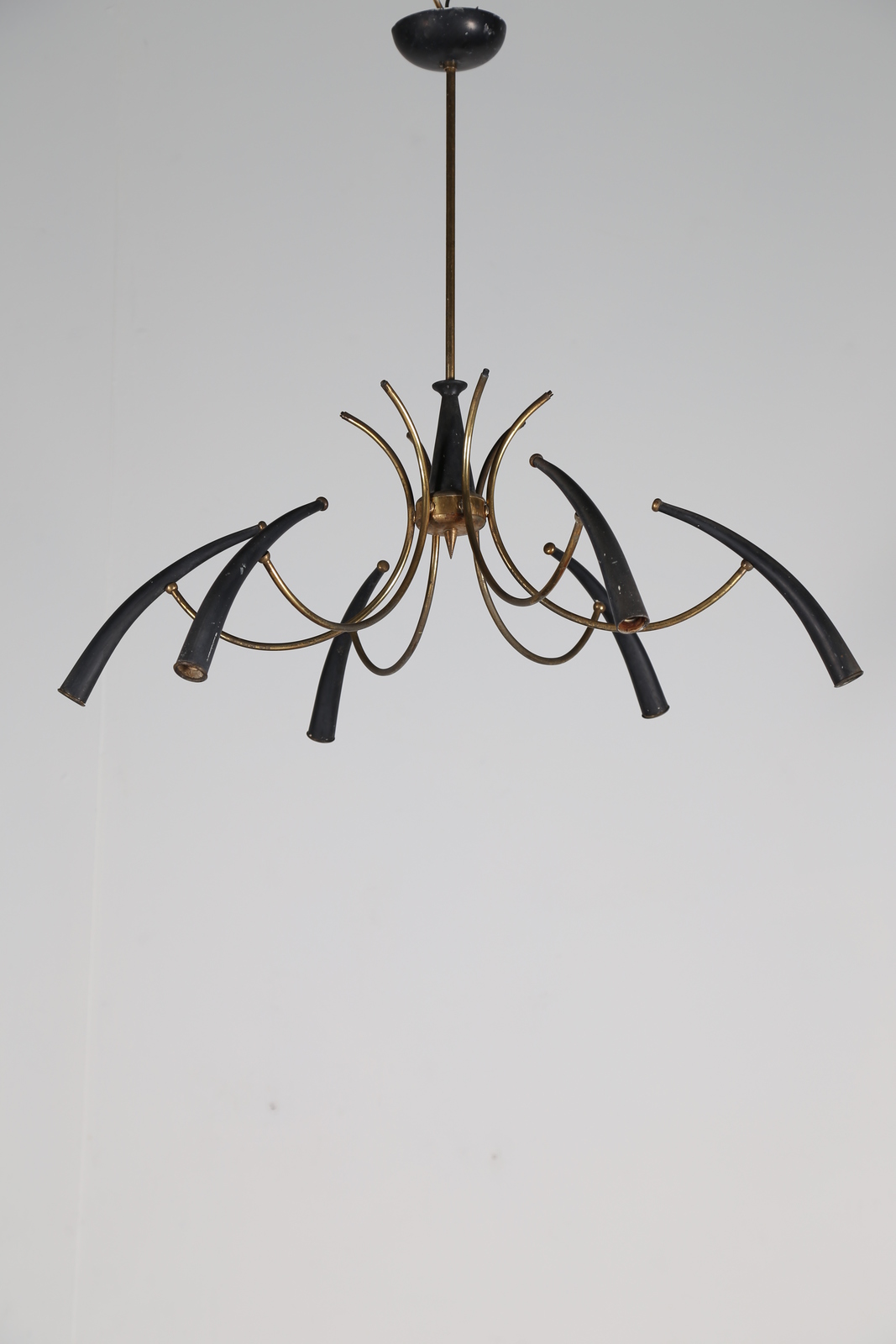 LUMI MILANO Lampadario in metallo laccato e ottone, per Lumi Milano, anni 50....