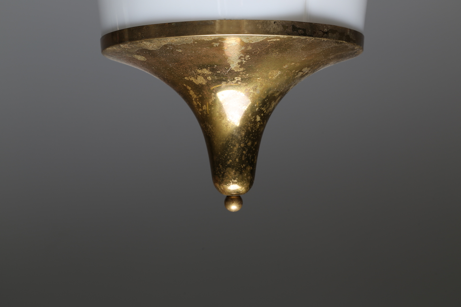 ARREDOLUCE Attrib. Grande lampada plafoniera a sospensione in ottone e...