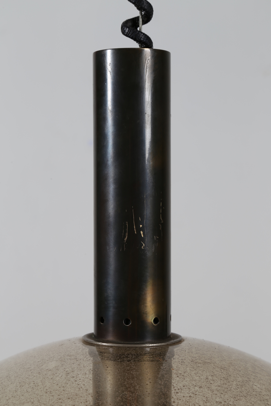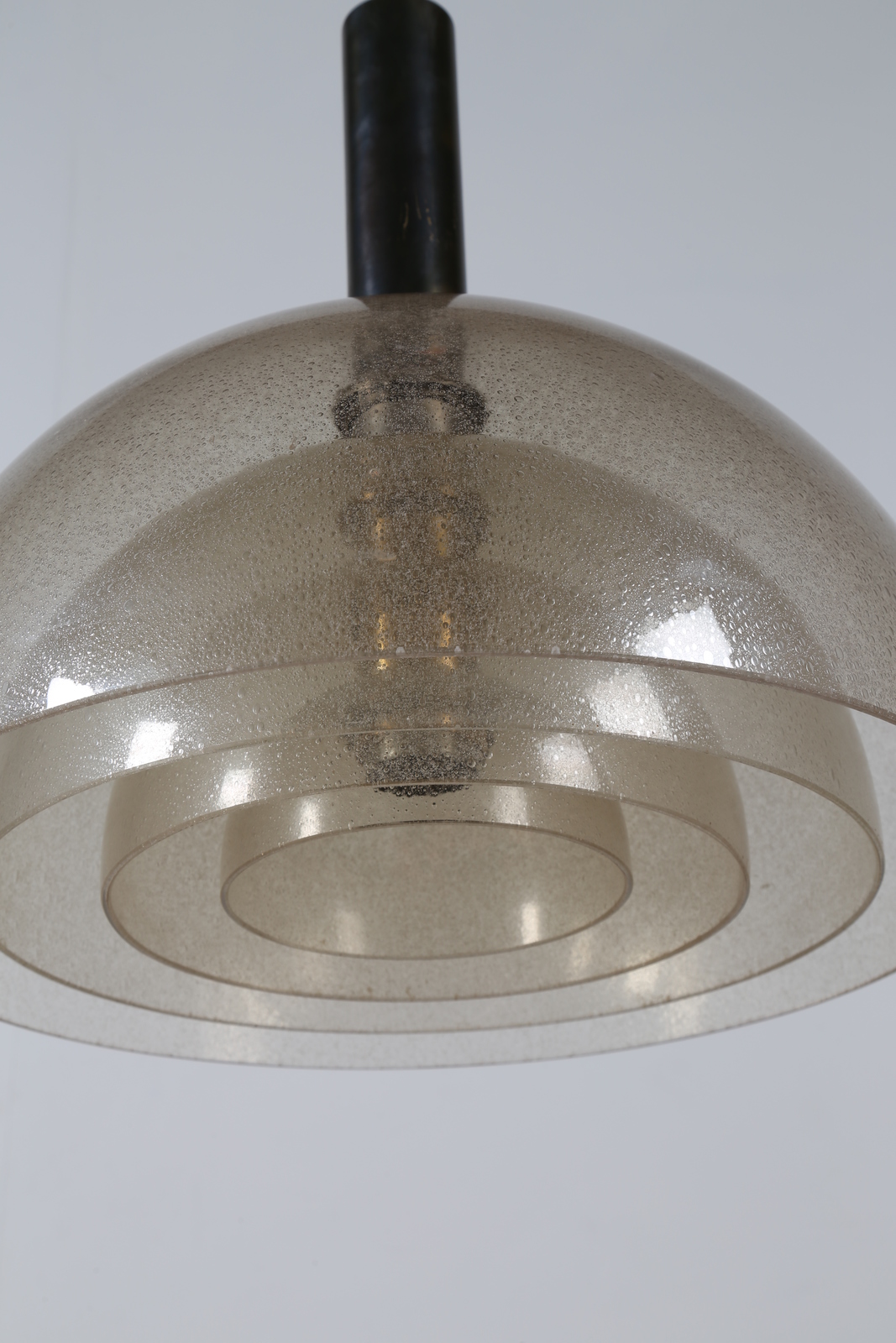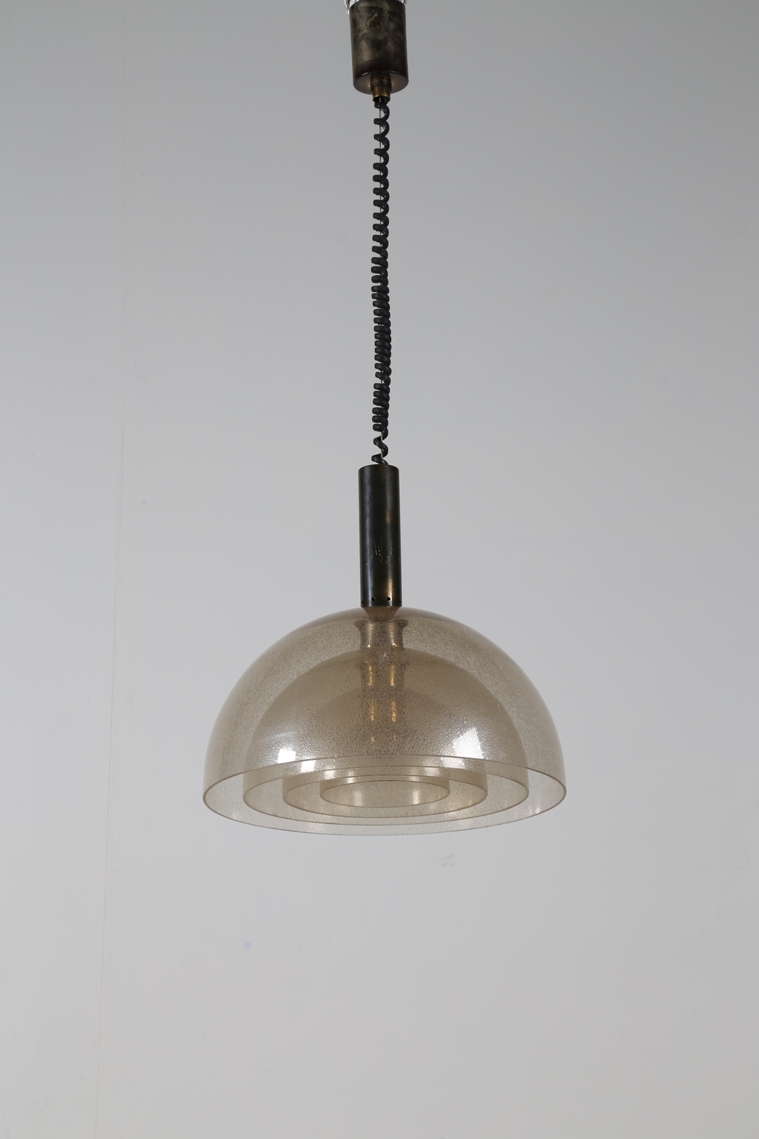 NASON CARLO (n. 1936) Lampada a sospensione in ottone e quattro vetri concentrici bollicine prod. AV Mazzega, anni 60. -. Cm 46,00 x 110,00 x 46,00.