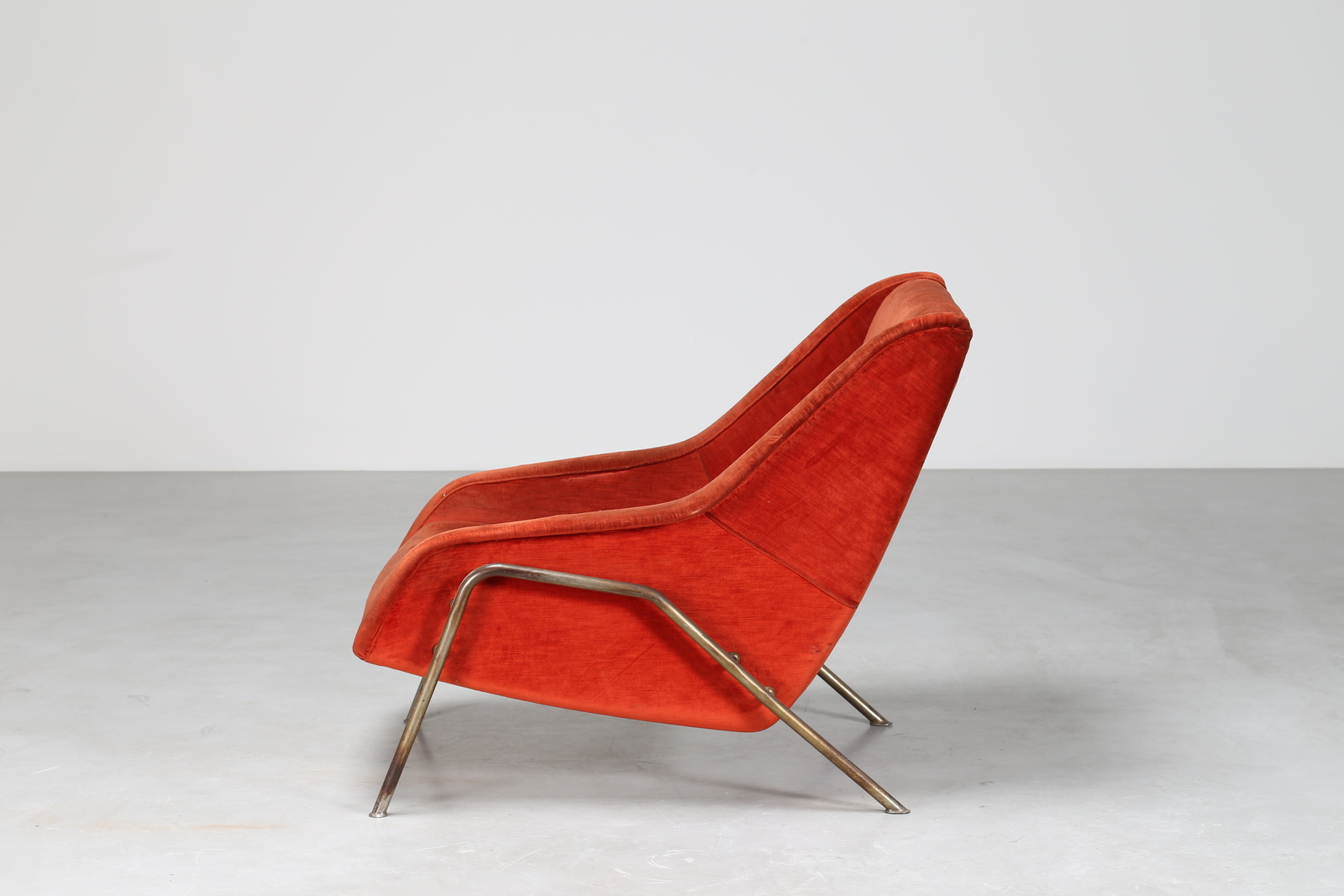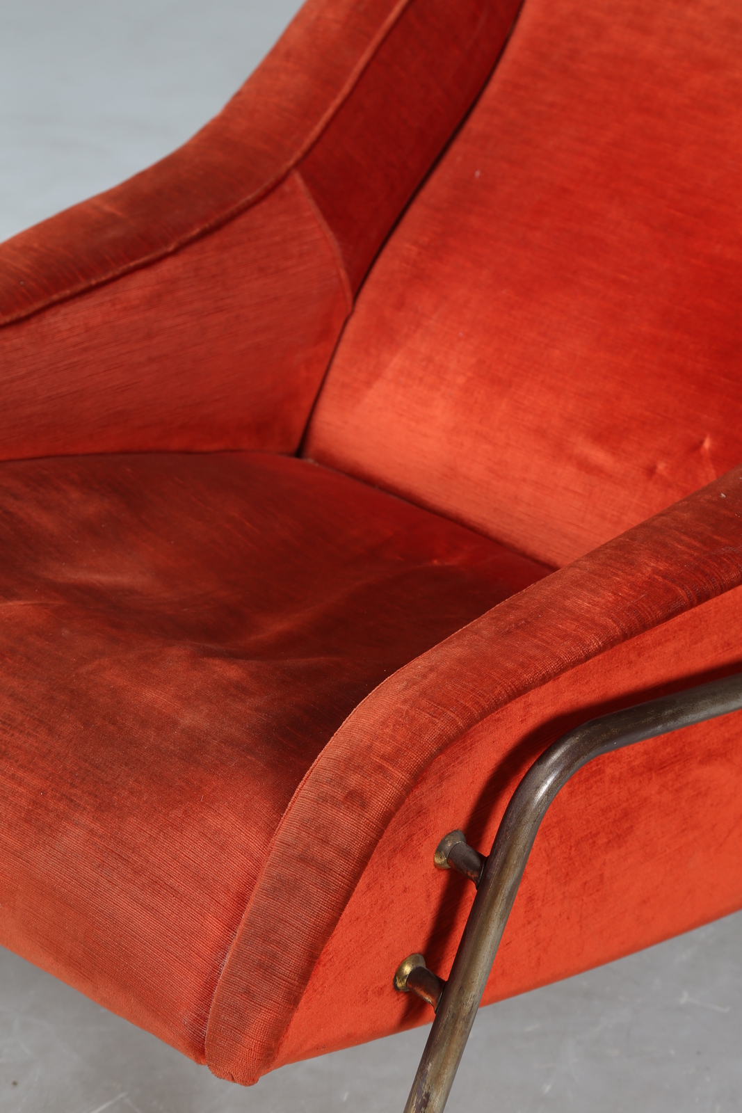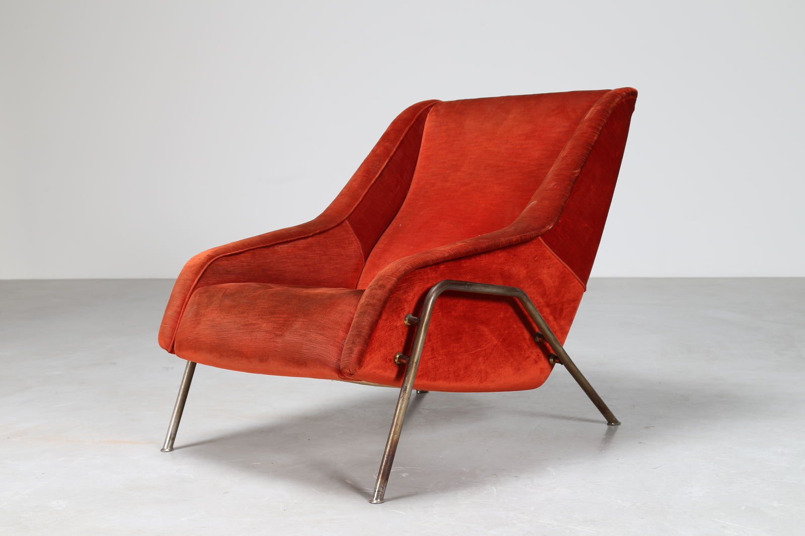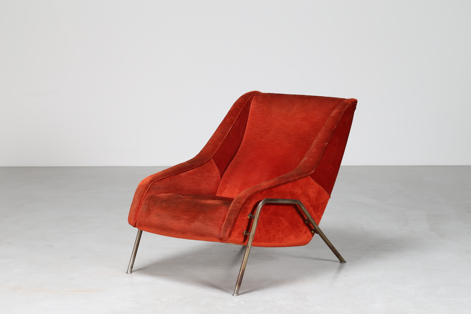 MANIFATTURA ITALIANA Poltrona in tessuto e metallo, anni 50. -. Cm 76,00 x 81,00 x 102,00.