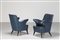 ANONIMA CASTELLI Coppia poltrone in legno e skai, anni 60. -. Cm 79,50 x...
