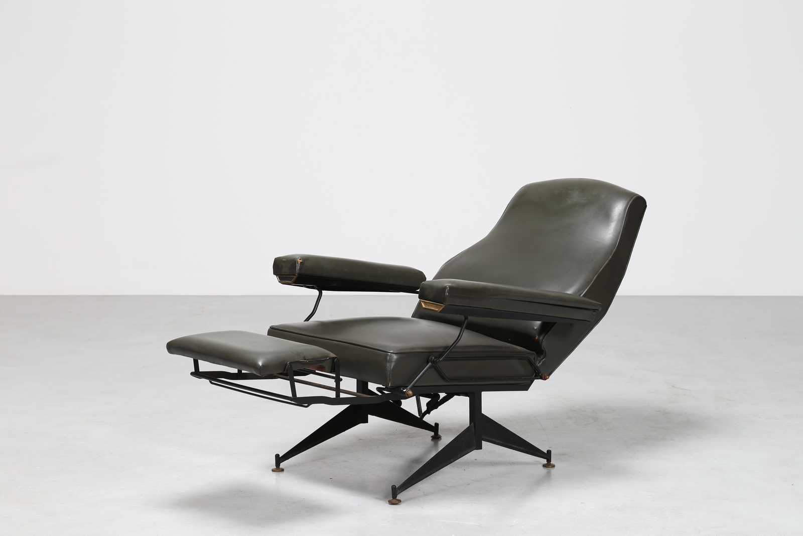PINI NELLO Poltrona relax in sky metallo e ottone, produzione Mobilificio Gigante Livorno, anni 60. Pubblicazioni; modelli simili Domus num. 416 luglio 1964, pag.40. . -. Cm 82,00 x 100,00 x 68,00.