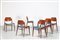 HARTMUT LOHMEYER Sei sedie in teak e tessuto, mod. 476°, per Wilkhahn, anni...