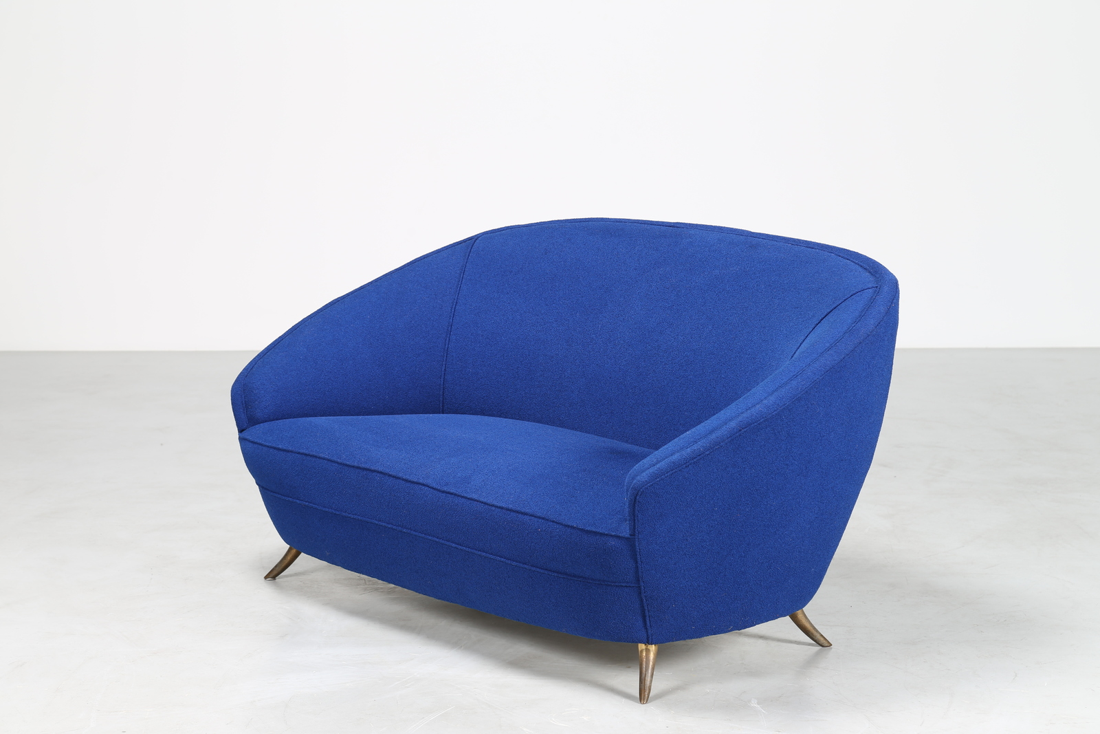 VERONESI GUGLIELMO Divano con piedini in ottone, imbottitura rivestita in...