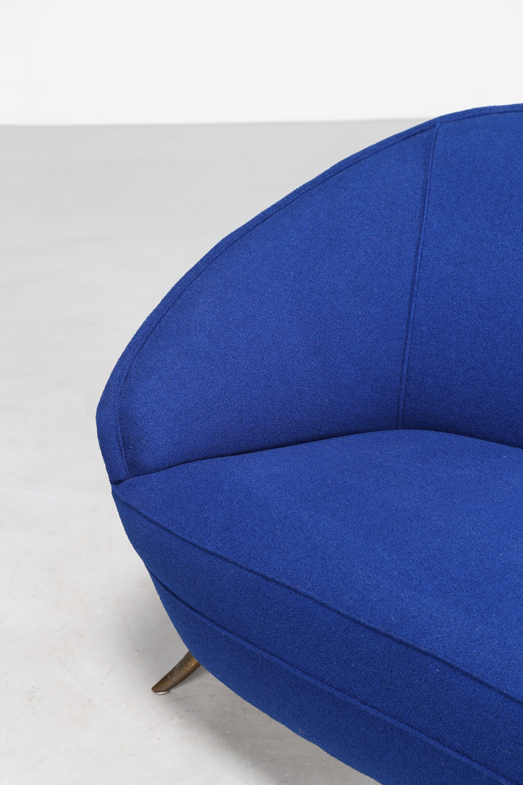 VERONESI GUGLIELMO Divano con piedini in ottone, imbottitura rivestita in pannolenci. mod. Perla, per Isa anni 50. Pubblicazioni; Domus num. 247 settembre 1952 pag. 4. . -. Cm 148,00 x 73,00 x 83,00.