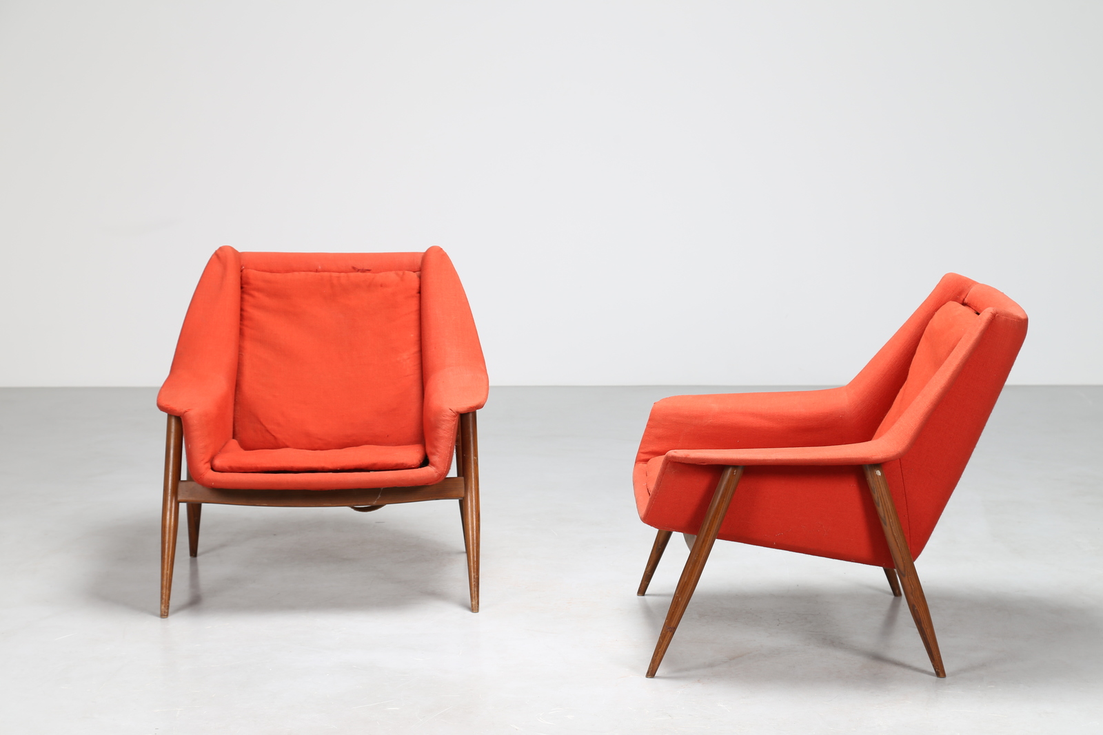 Lotto 357 | KNOLL WALTER Coppia di poltrone in tessuto e legno prod. Cassina, anni 60. -....