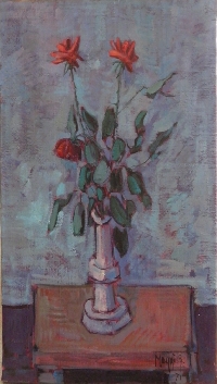 MAGGI GIANPIETRO ROSE ROSSE, 1971 OLIO SU TELA CM 45 X 80 Firma e anno in basso a destra Firma e titolo al retro