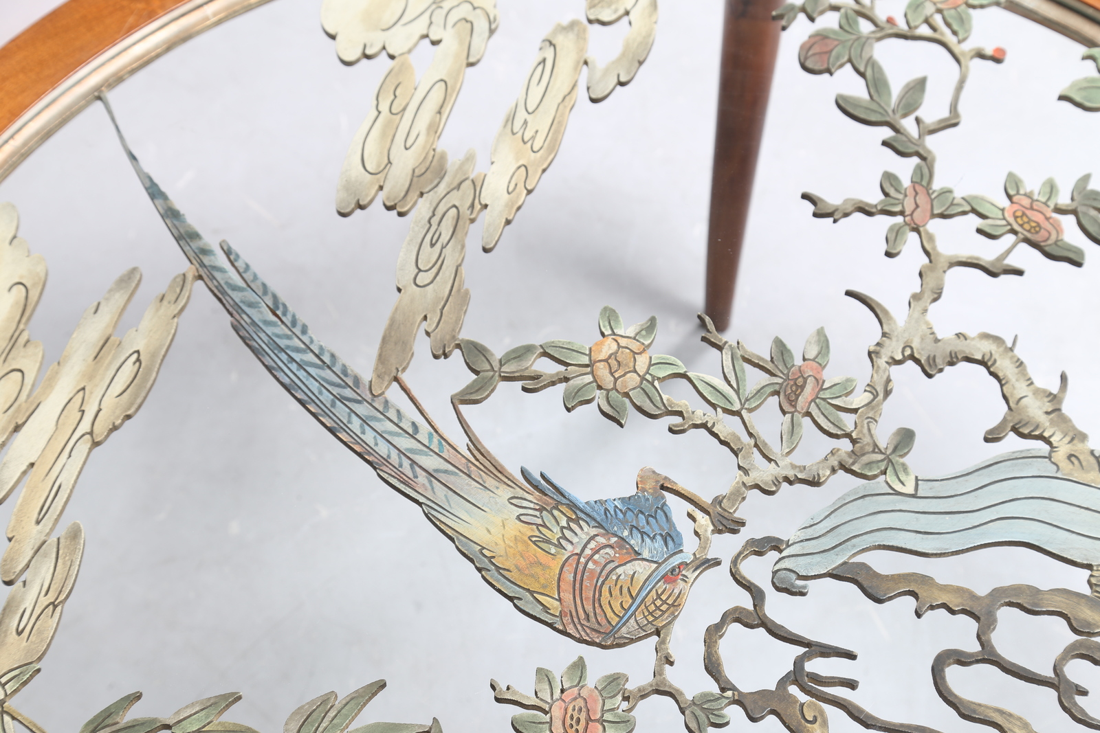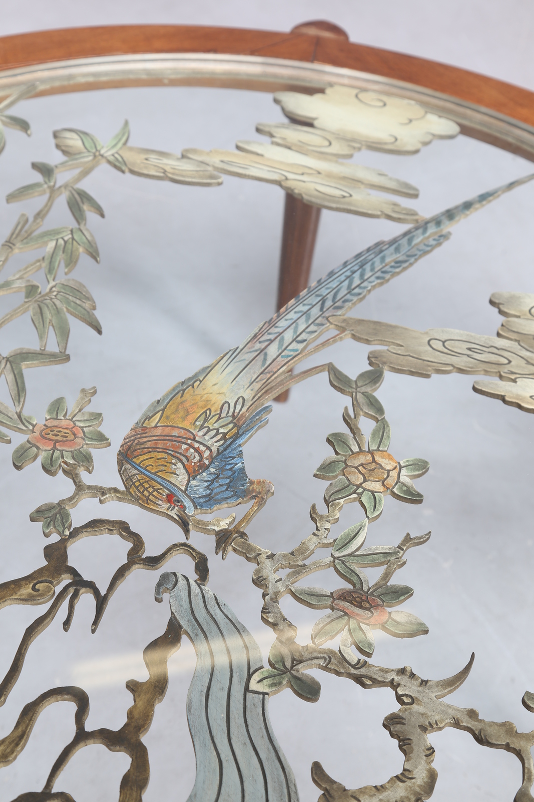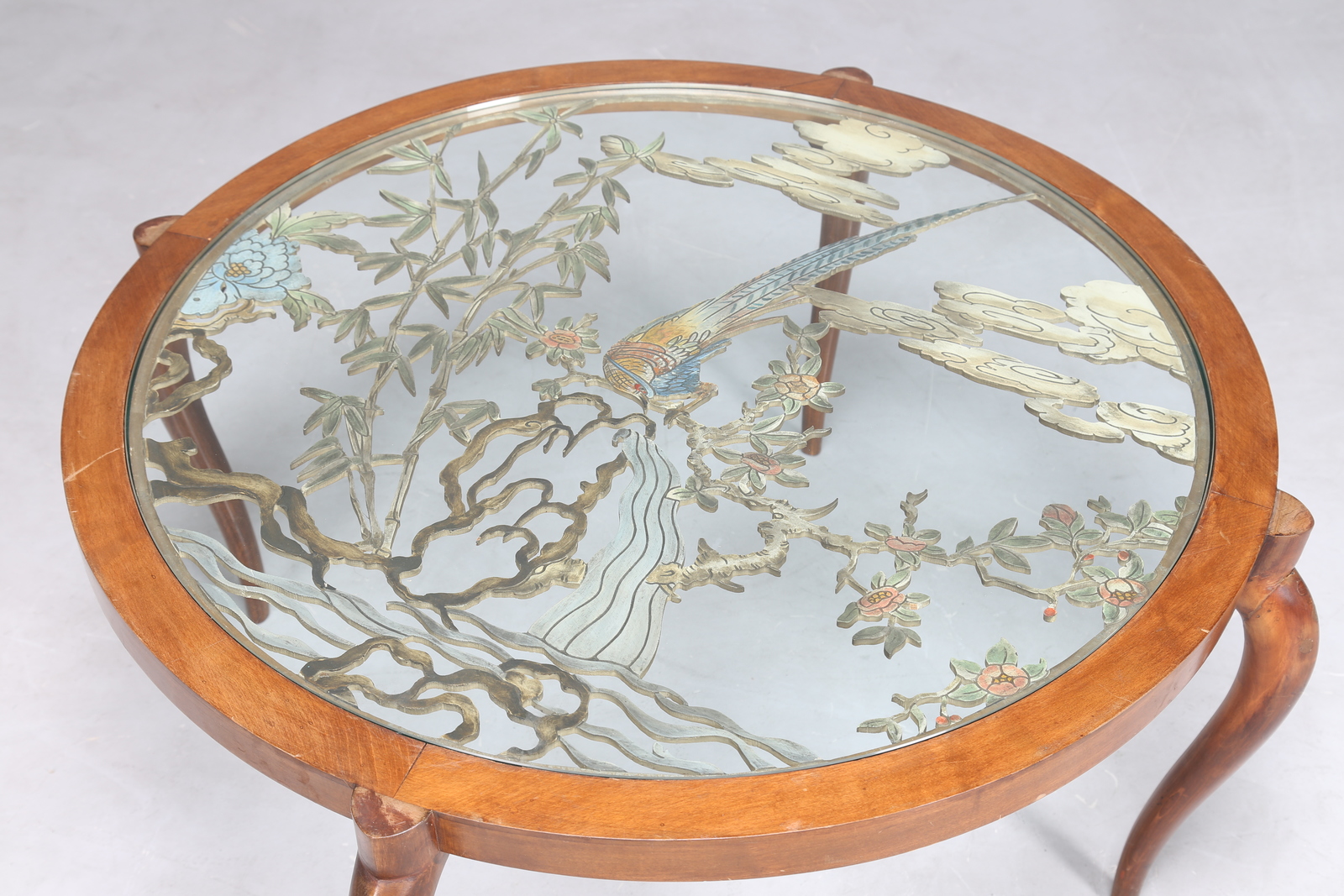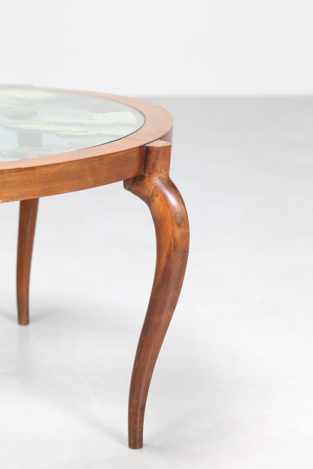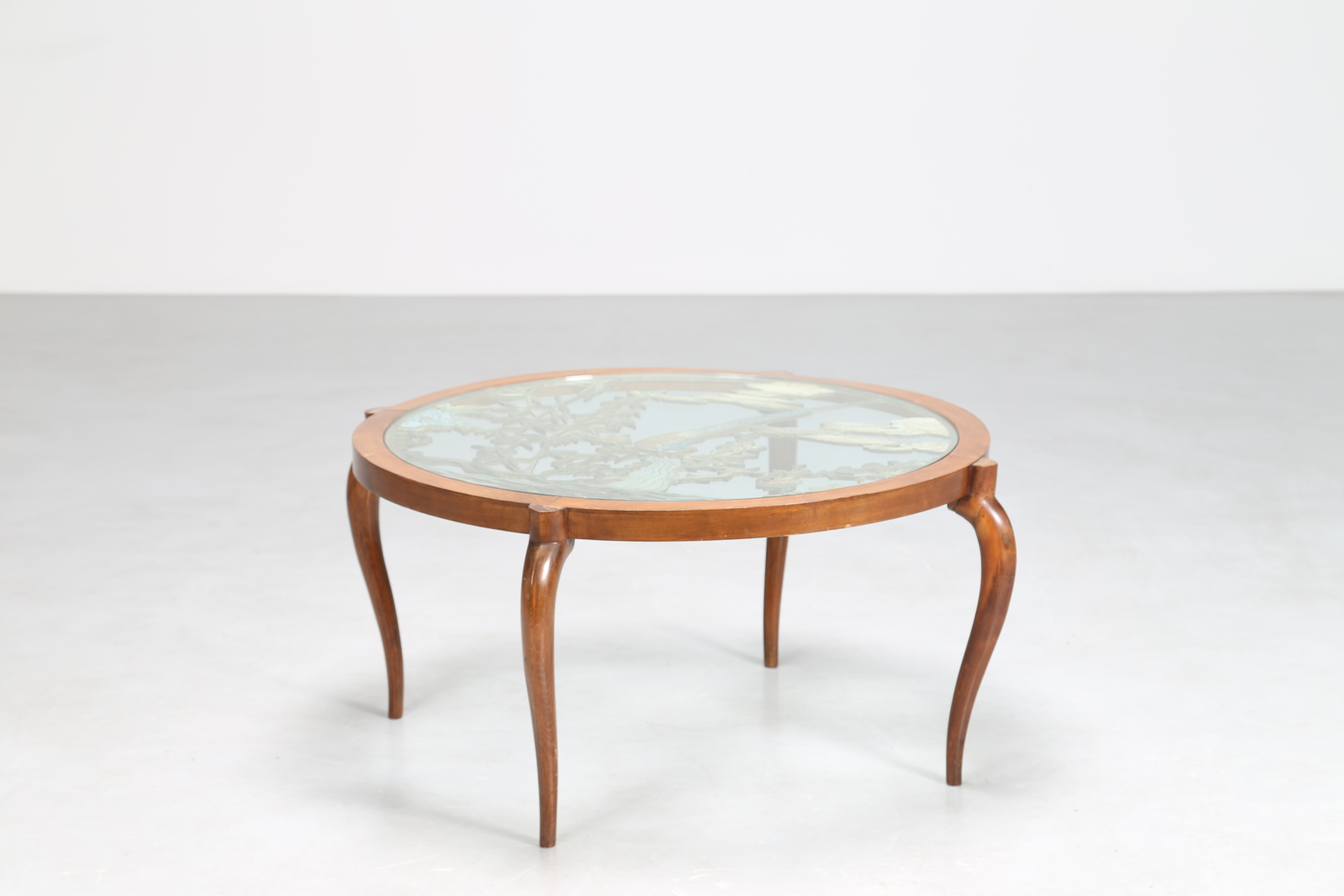 MANIFATTURA ITALIANA Tavolino da caffe in noce con piano in cristallo inciso...