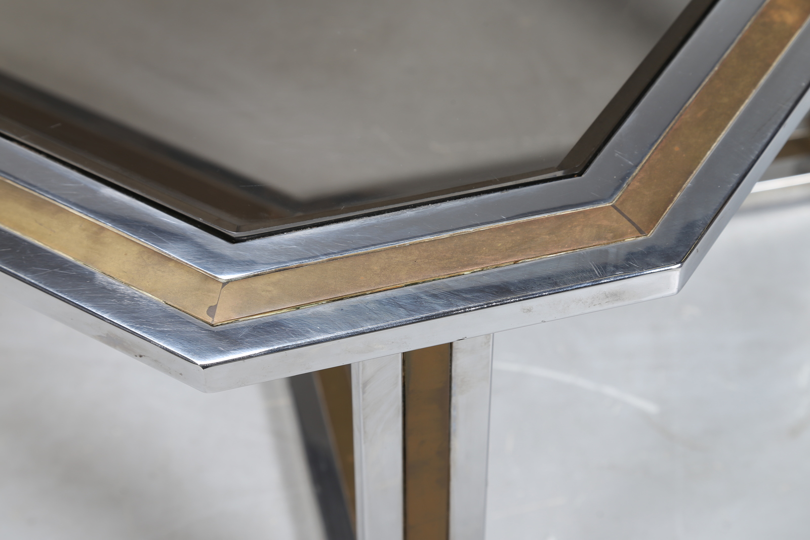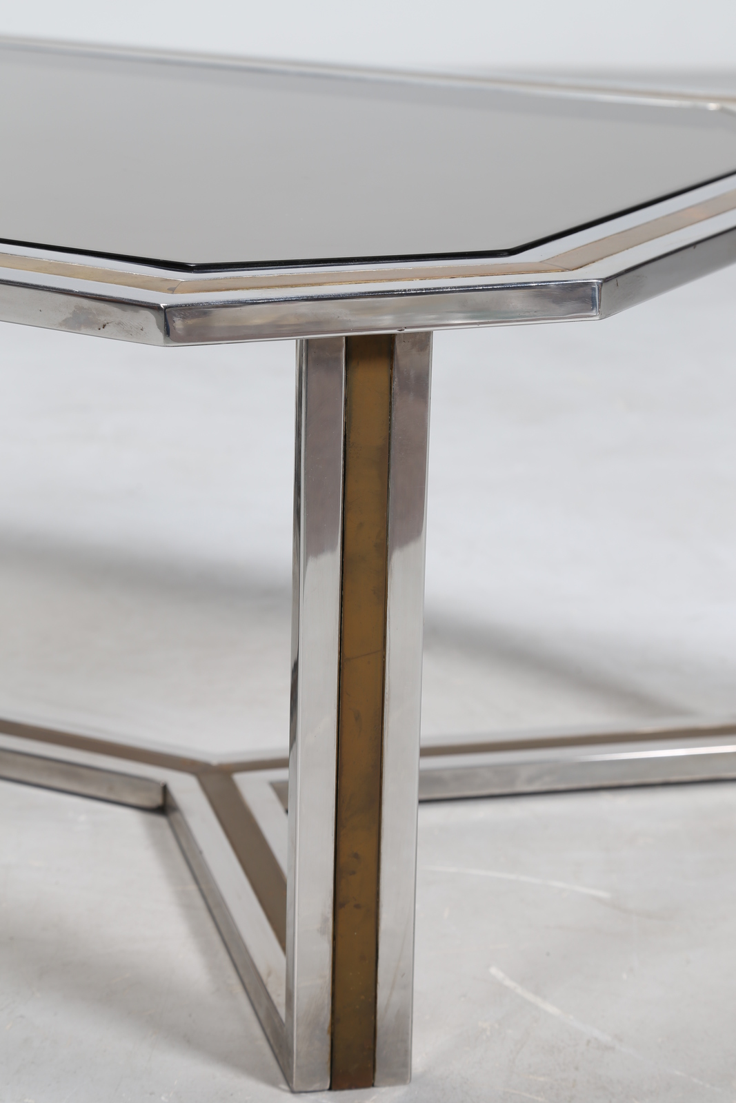 Lotto 384 | REGA ROMEO Tavolino da caffè in metallo cromato e ottone, con piano in vetro,...
