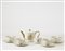 Arrigo Finzi ( 1890 - 1973) Servizio in porcellana decorato in oro composto da una teiera, quattro tazze, quattro piattini e una zuccheriera (lievi difetti) Porcelain set comprising a tea pot, four cups, four plates and a sugar bowl. Milan, 1930s/1940s (minor defects)
