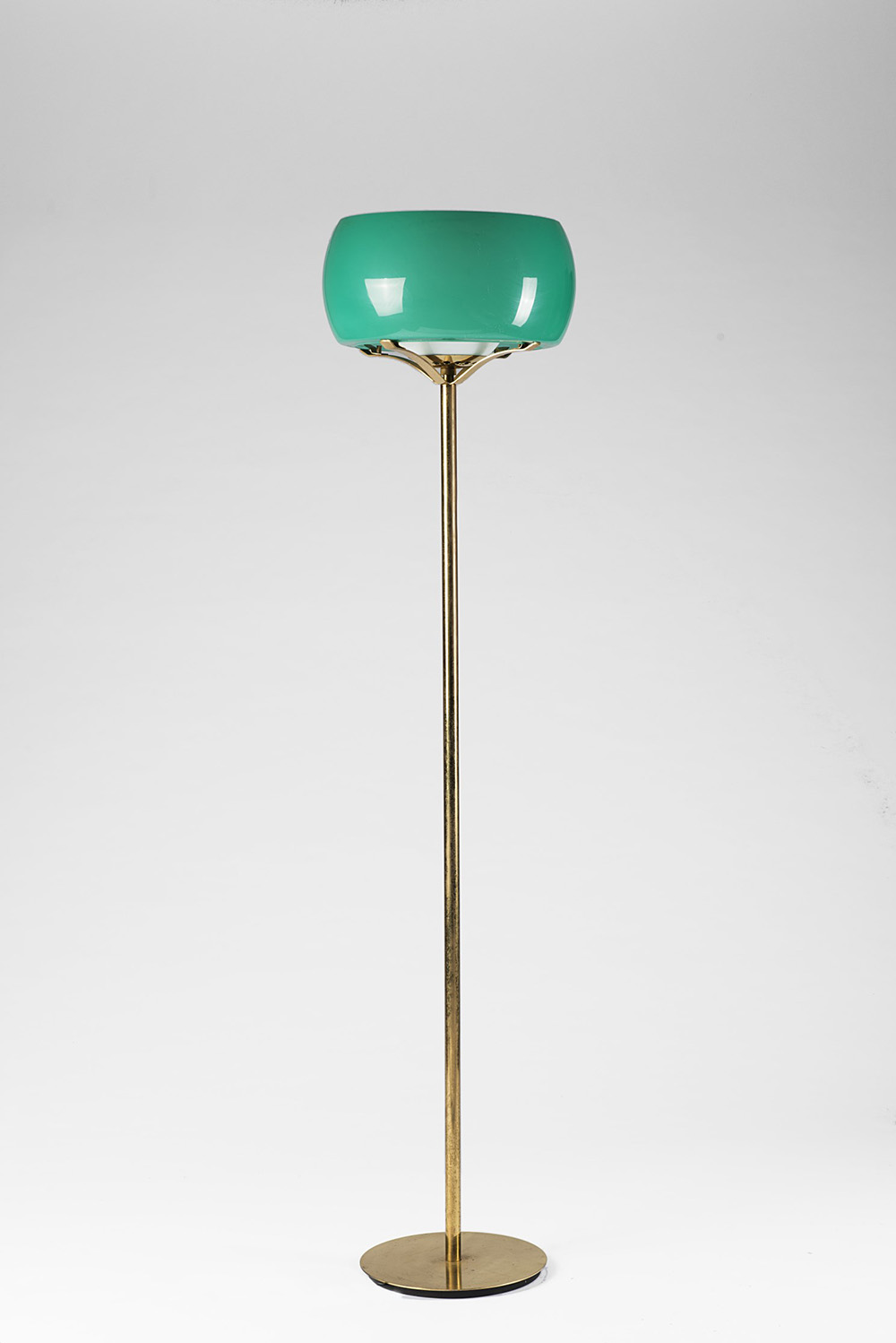 Vico Magistretti (Milano 1920 - Milano 2006) Lampada da terra modello "Clitunno". Produzione Artemide, Milano, 1964. Ottone nichelato e vetro incamiciato verde (h cm 166) (lievi difetti) Bibliografia: "Ottagono", n. 10, luglio 1968, p. 58; G. Gramigna, Repertorio del design italiano 1950/2000 per l'arredamento domestico, Torino, Allemandi 2011, vol 1, p. 113 Floor lamp model "Clitunno". Produced by Artemide, Milan, 1964. Brass and green glass (h cm 166) (minor defects) Bibliography: "Ottagono", n. 10, luglio 1968, p. 58; G. Gramigna, Repertorio del design italiano 1950/2000 per l'arredamento domestico, Torino, Allemandi 2011, vol 1, p. 113